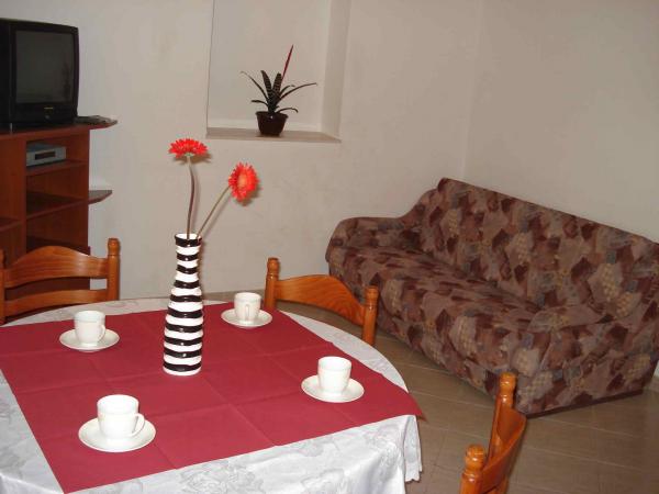 Voor dit appartement vonden we bij toeval, Ivon gevraagd over de Albatros, en er was al volgeboekt. Ik heb geen spijt. Het was goedkoper, meer intieme, schoon, grote koel terras, een tuin en veel ruimte voor de kinderen om rond te rennen, dicht bij de stranden, misschien niet snorkelen, maar perfect voor peuters en kleuters. Een paar van de pubs om uit te kiezen zeer dicht bij de winkel, waar u kunt betalen met een creditcard of drie stappen van het huis. Huis verscholen licht in de diepte, dus zelfs een goede locatie, niemand schreeuwde bij het raam. De appartementen zijn niet een of andere manier super-moderne apparatuur, maar niets in hen dat we misten, veel schuilplaatsen voor verrommeling dingen, beddengoed, handdoeken, mazen op muggen (in Vinisce vliegende kleine, zeer kwaadwillig exemplaren), handzeep, afwasmiddel vaartuigen. Goed te vervoeren om te zitten op de grond en het rijden in de omgeving. Neem contact op met Ivona groot. Ik beveel:-)
