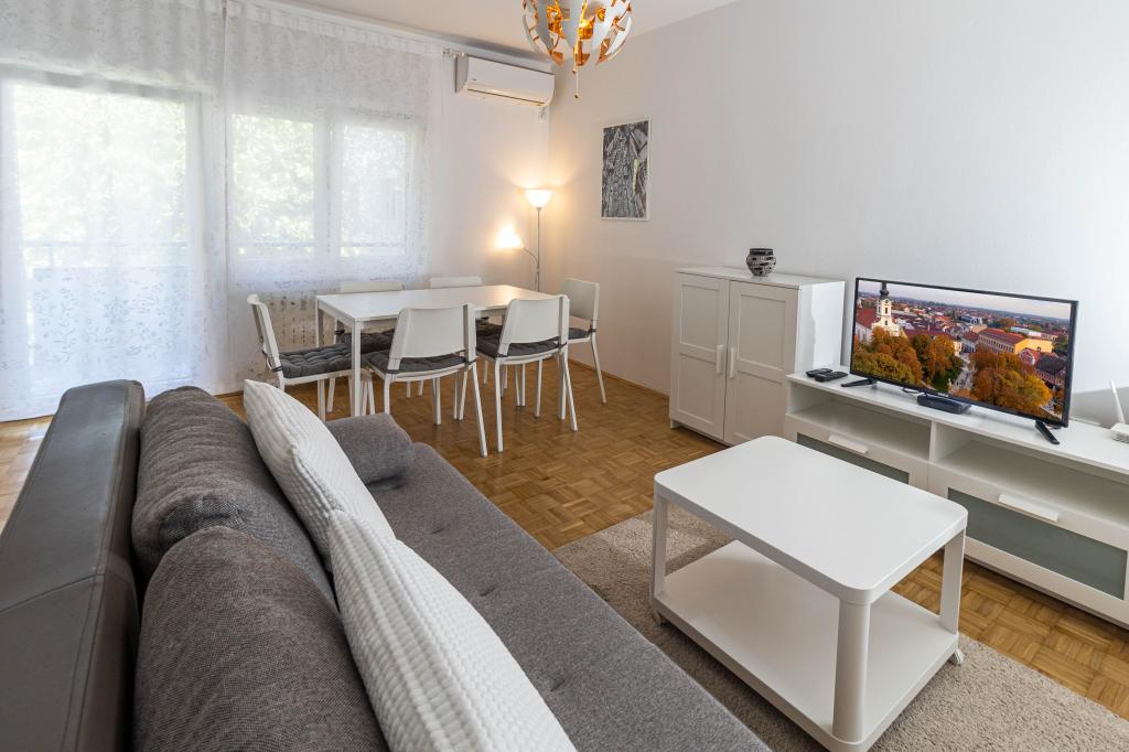 Uitstekende locatie in het stadscentrum! Volledig nieuw gerenoveerd appartement (58m2) voor comfortabel verblijf voor vier tot zes personen. Grote woonkamer (bank die uit te breiden is tot extra bed voor twee personen), balkon, twee slaapkamers (elk met een bed voor twee personen), keuken, badkamer met inloopdouche en gang. Volledig uitgeruste keuken, wasmachine / droger, ruimte met airconditioning, wifi (optische internetverbinding), 120 tv-programma's, mooi balkon ...