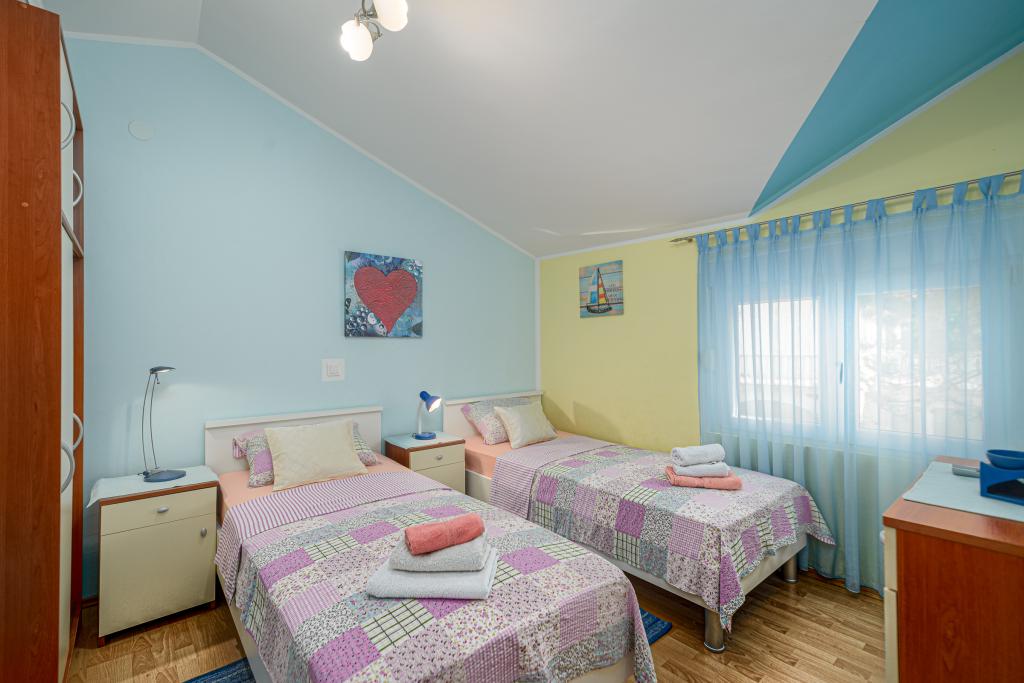 Appartement Lela bevindt zich op de eerste verdieping. Het appartement heeft twee slaapkamers, twee badkamers, een grote woonkamer met keuken en eethoek, en een groot terras. Het strand ligt op 100 meter afstand van het appartement, winkel ook 100 meter. Op het strand is er een fastfoodrestaurant en een koffiebar. De straat is rustig, het verkeer is alleen voor straatbewoners. Het appartement heeft een eigen parkeerplaats in de tuin, een barbecue en een eigen groot terras Het strand is van beton met kiezelstenen en 200 meter verderop is een baai met een zandstrand. Winkel en bakker ligt op 100 meter van het appartement Het appartement heeft stadswater, airconditioning en gratis internet. Georganiseerde tochten via het VVV-kantoor Vir naar de Krka-watervallen, Kornati, Plitvicemeren en andere interessante bestemmingen. Verhuur van fietsen, speedboten en boten Duikschool. We willen dat u zich op uw gemak voelt in uw appartement in uw huis en dat uw verblijf in Vir in uw dierbare herinneringen zal blijven :) We kijken uit naar uw komst
