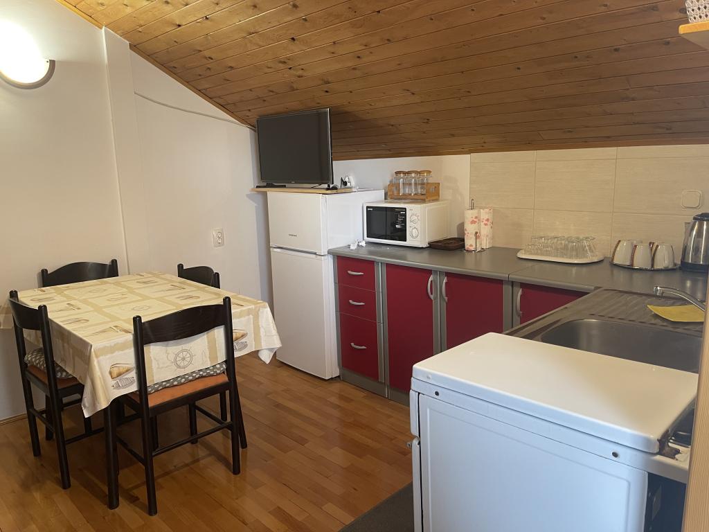 Appartement op de eerste verdieping (begane grond), met aparte ingang in een vakantiehuis op het eiland Vir, ongeveer 100-150 m van het strand, 70 m van de dichtstbijzijnde winkel en restaurant. Het appartement beschikt over een aparte slaapkamer met een tweepersoonsbed, een woonkamer met keuken waar u een extra bed voor twee personen kunt plaatsen, een badkamer en een terras van ongeveer 15 m2. Er is een parkeerplaats voor het gebouw.