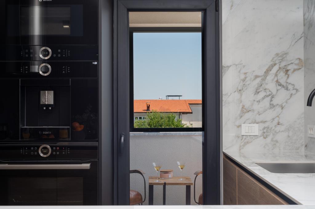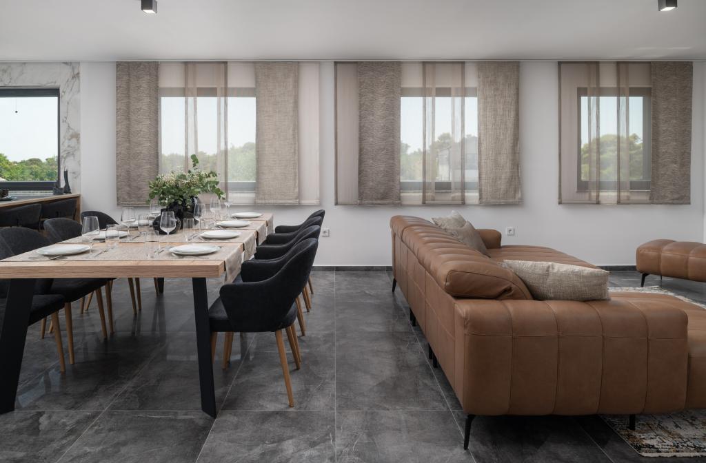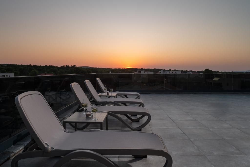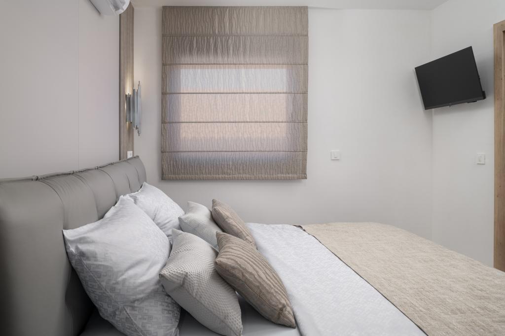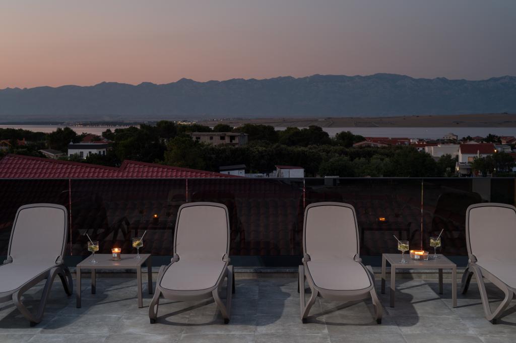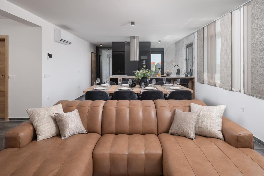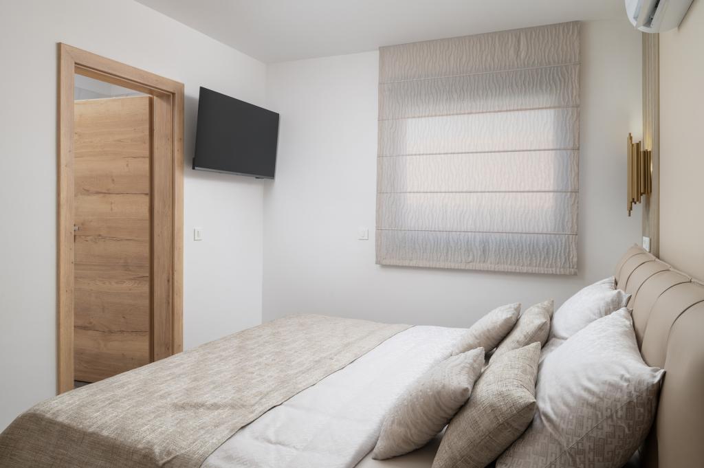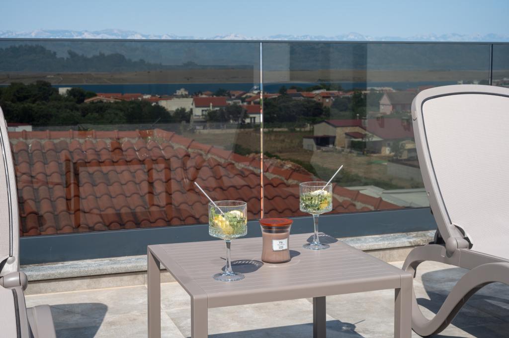 Dit met design ingerichte en volledig nieuw ingerichte 5-sterren penthouse op de tweede verdieping ligt in het centrum van het eiland Vir. Het penthouse van 100 m² is ideaal voor 4-5 personen. Het is verdeeld in een woonkamer met een volledig uitgeruste keuken en eethoek, een apart toilet, een inloopkast, twee slaapkamers met airconditioning en een tweepersoonsbed met satelliet-tv en twee en-suite badkamers (één met douche en één met bad). De woonkamer is voorzien van een slaapbank voor één persoon. Het penthouse beschikt over een overdekt balkon met een elektrische grill, een tafel en stoelen van 3 m², vanwaar u gedeeltelijk uitzicht op zee heeft. Het penthouse beschikt over een dakterras (90 m²) met uitzicht op zee en ligstoelen.