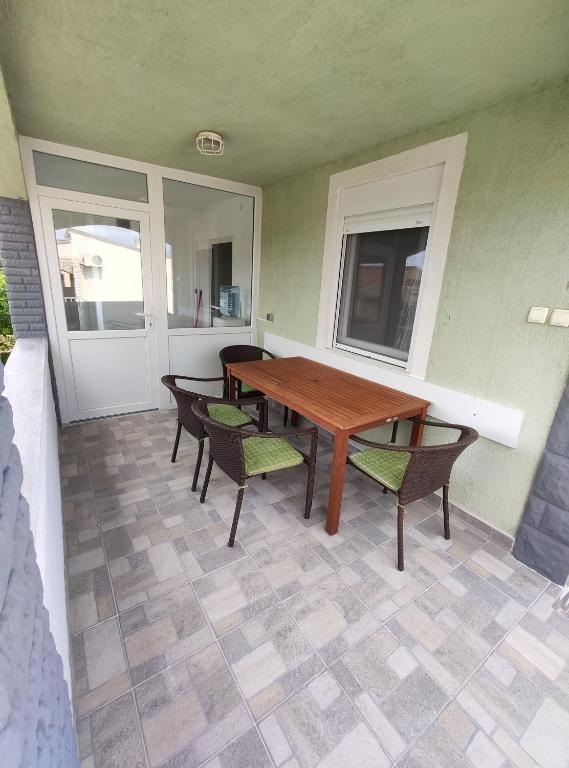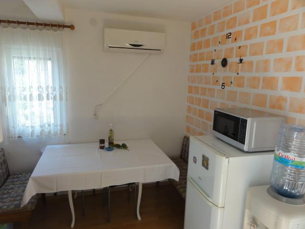 Het appartement is gelegen in een rustig deel van het eiland, op de eerste verdieping met een aparte ingang en een terras. Het appartement bestaat uit twee slaapkamers, een woonkamer, een keuken met eetkamer, een badkamer en een terras. Er is een parkeerplaats in de tuin en de mogelijkheid om de grill te gebruiken. Het appartement is uitgerust met een lcd-tv, boiler, vaatwasser, magnetron, broodrooster, haardroger, strijkijzer en er is een mogelijkheid om een wasmachine te gebruiken. Het kiezelstrand is geschikt voor gezinnen met kleine kinderen en ligt op 220 meter afstand van het appartement, en er is een klein café op het strand.
