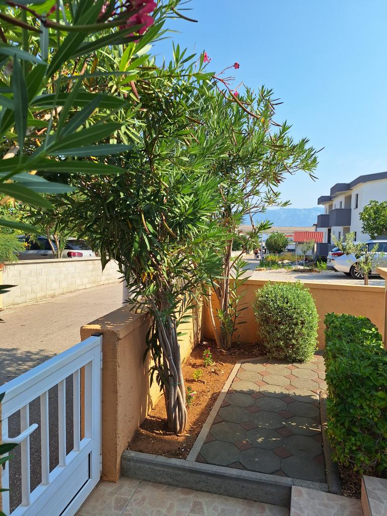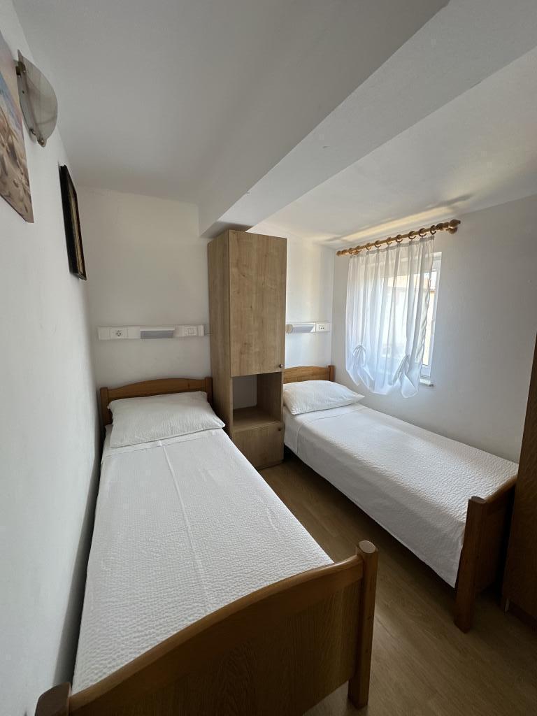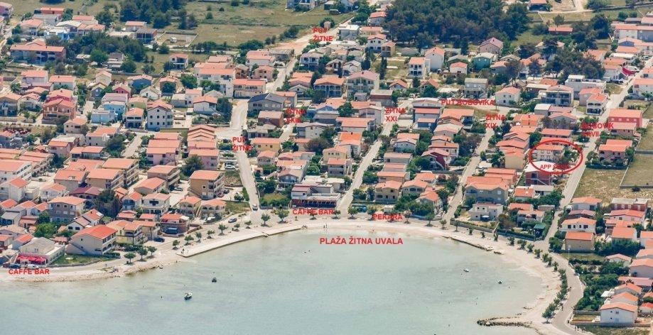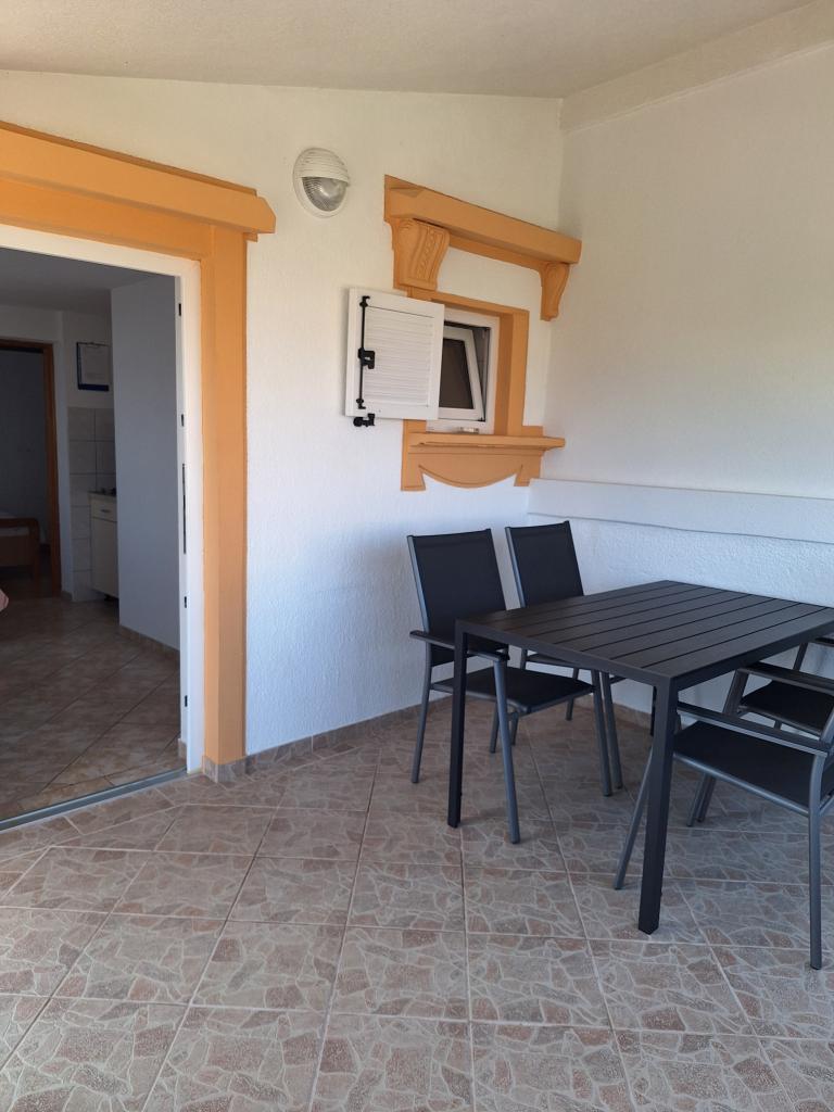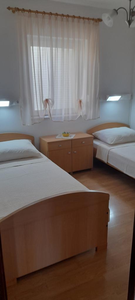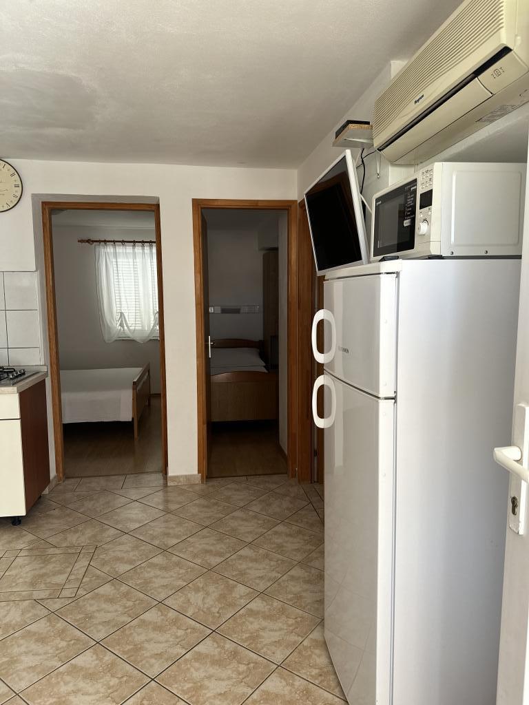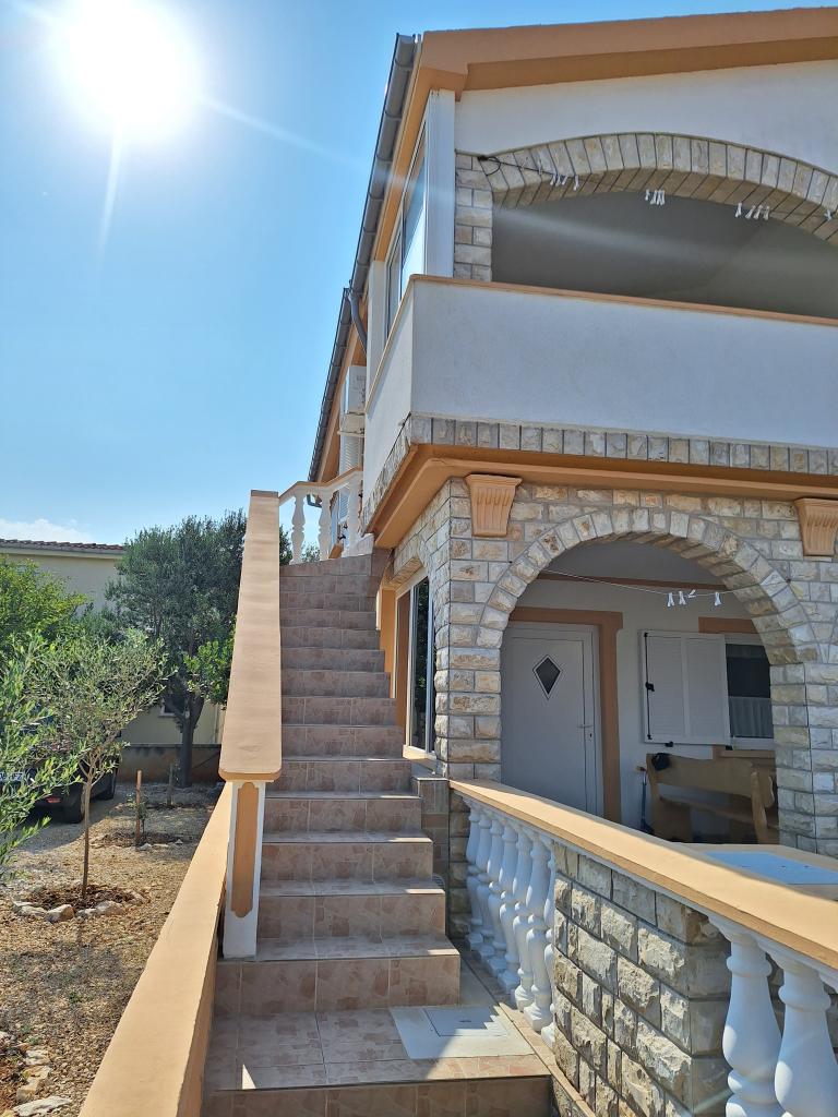 Er zijn drie appartementen in het huis. Twee ervan hebben twee slaapkamers, een woonkamer, een keuken, een badkamer en een groot overdekt terras. Elke kamer heeft één kamer met een tweepersoonsbed, en de andere kamer heeft twee eenpersoonsbedden. Het derde appartement heeft een slaapkamer met een tweepersoonsbed, een keuken, een badkamer en een groot overdekt terras. Alle kamers zijn voorzien van beddengoed. De keukens zijn uitgerust met servies om eten te koken en te serveren, evenals een magnetron en een waterkoker. Elk appartement beschikt over airconditioning, die bij de prijs is inbegrepen. Alle appartementen hebben een aparte ingang. Er is een parkeerplaats bij het huis die voor alle gasten beschikbaar is. Er kan ook gebruik worden gemaakt van een barbecue. Het strand Žitna uvala ligt op 80 meter afstand. Het strand is kiezelstrand en de zee is zanderig. Langs het strand lopen een promenade en een fietspad, en er zijn diverse cafés, restaurants, banketbakkers en bakkerijen. Er zijn verschillende winkels binnen 100 meter. Het centrum van Vir ligt op 1800m afstand.