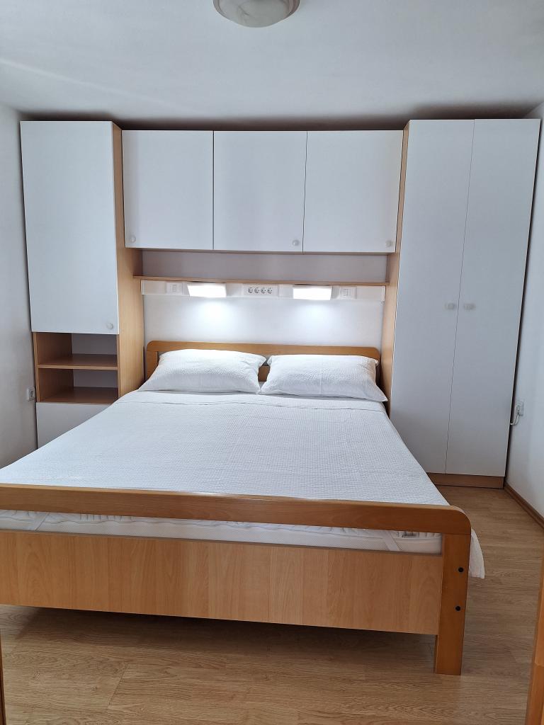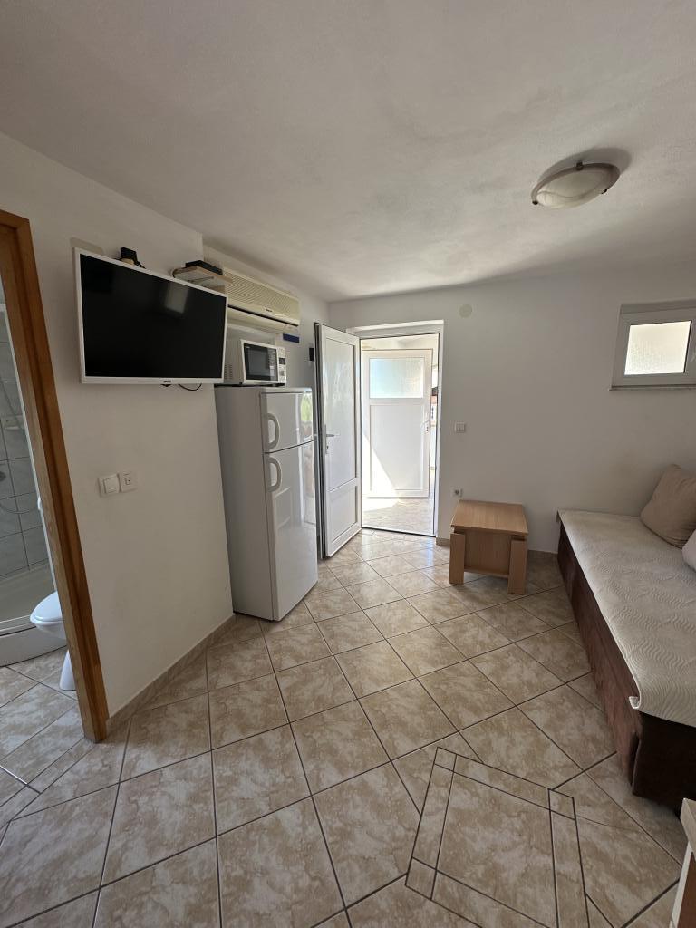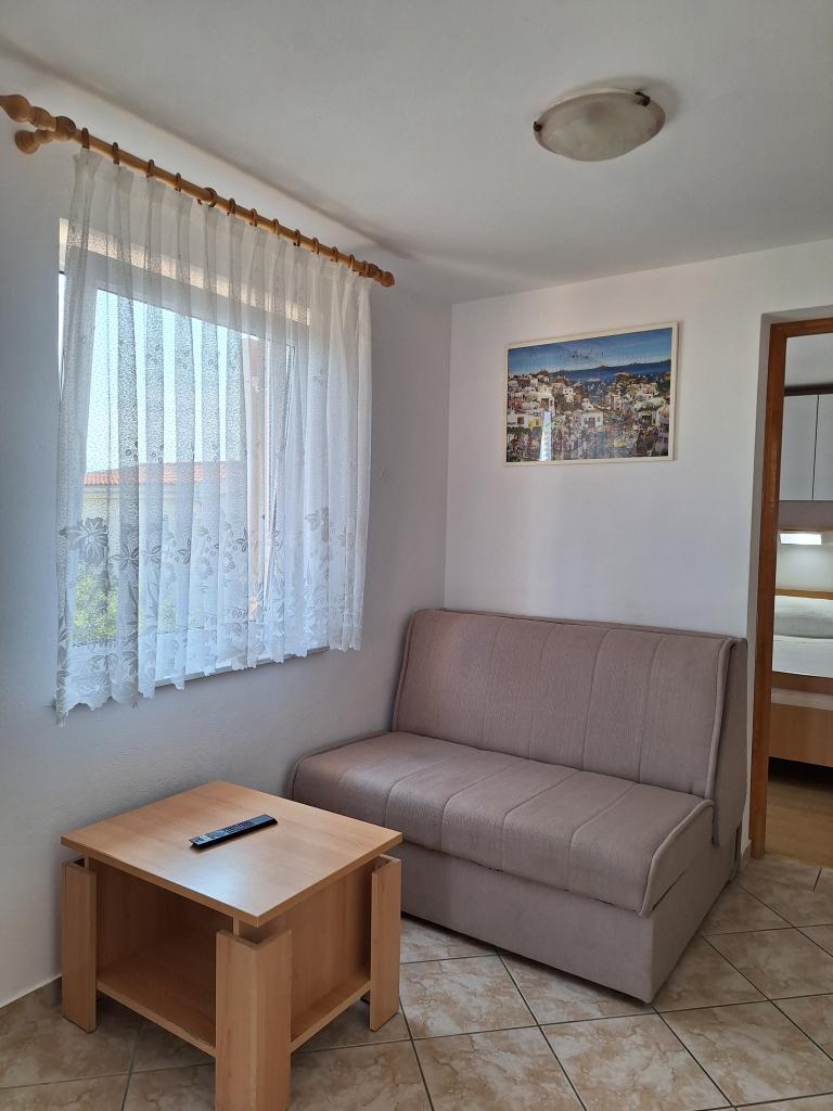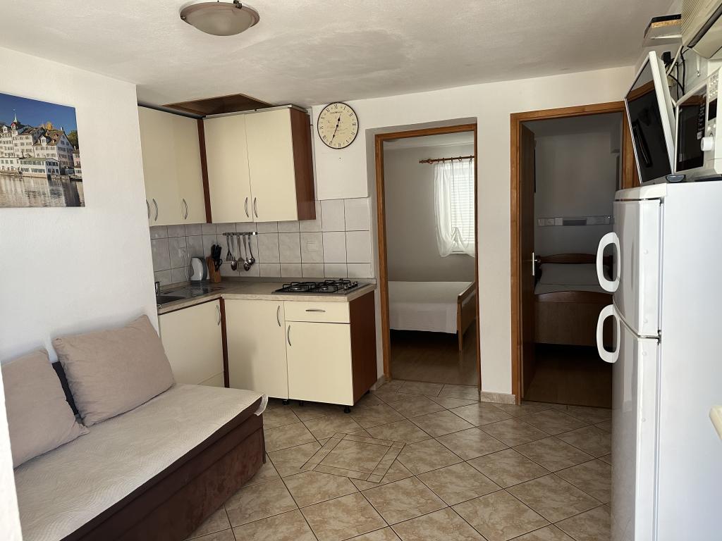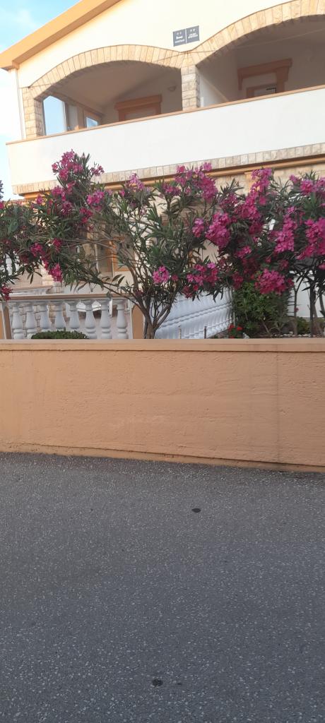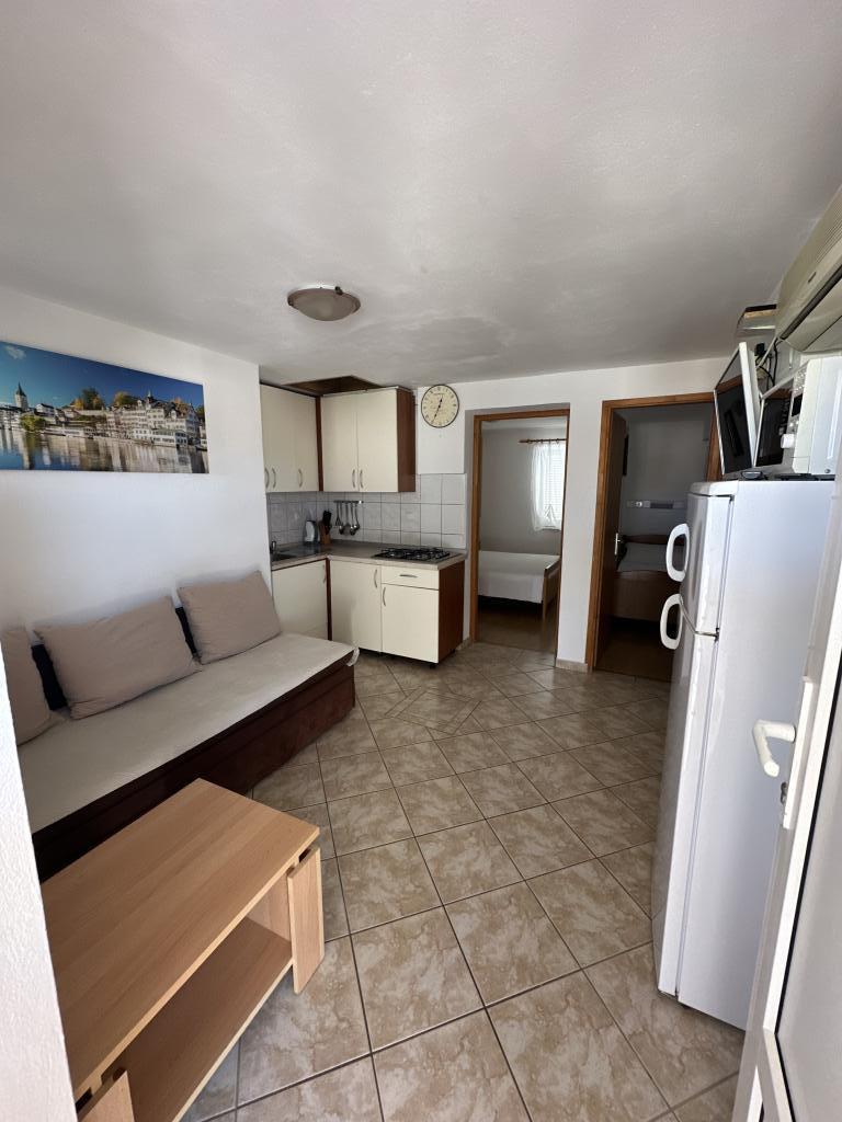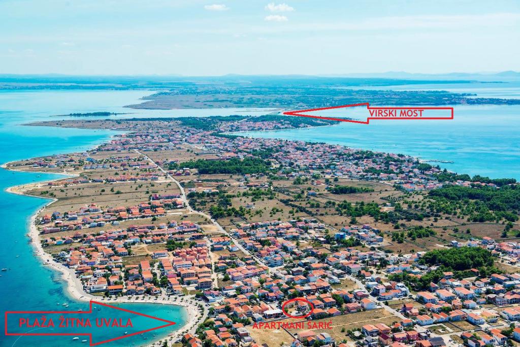 Er zijn drie appartementen in het huis. Twee ervan hebben twee slaapkamers, een woonkamer, een keuken, een badkamer en een groot overdekt terras. Elke kamer heeft één kamer met een tweepersoonsbed, en de andere kamer heeft twee eenpersoonsbedden. Het derde appartement heeft een slaapkamer met een tweepersoonsbed, een keuken, een badkamer en een groot overdekt terras. Alle kamers zijn voorzien van beddengoed. De keukens zijn uitgerust met servies om eten te koken en te serveren, evenals een magnetron en een waterkoker. Elk appartement beschikt over airconditioning, die bij de prijs is inbegrepen. Alle appartementen hebben een aparte ingang. Er is een parkeerplaats bij het huis die voor alle gasten beschikbaar is. Er kan ook gebruik worden gemaakt van een barbecue. Het strand Žitna uvala ligt op 80 meter afstand. Het strand is kiezelstrand en de zee is zanderig. Langs het strand lopen een promenade en een fietspad, en er zijn diverse cafés, restaurants, banketbakkers en bakkerijen. Er zijn verschillende winkels binnen 100 meter. Het centrum van Vir ligt op 1800m afstand.