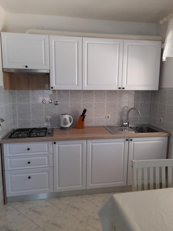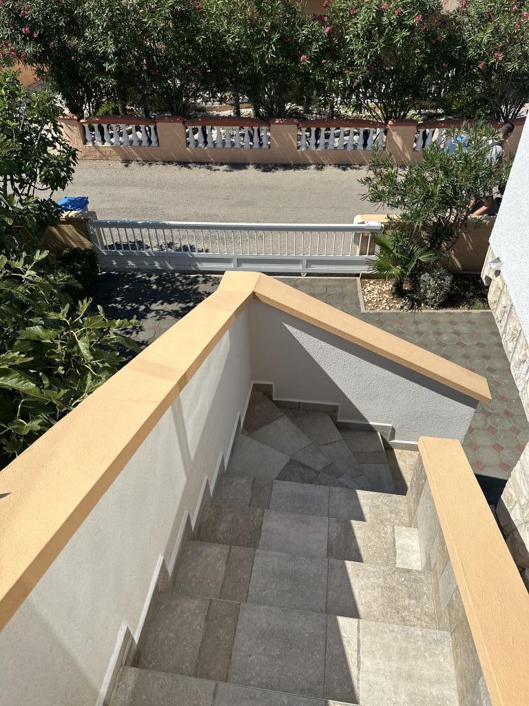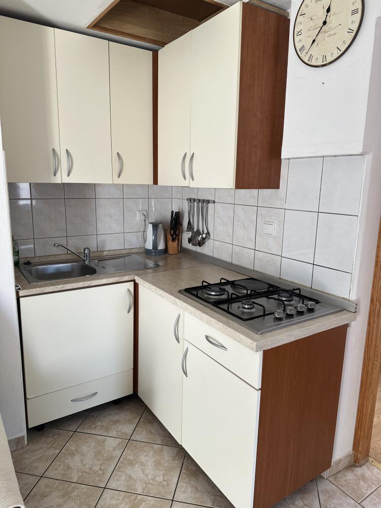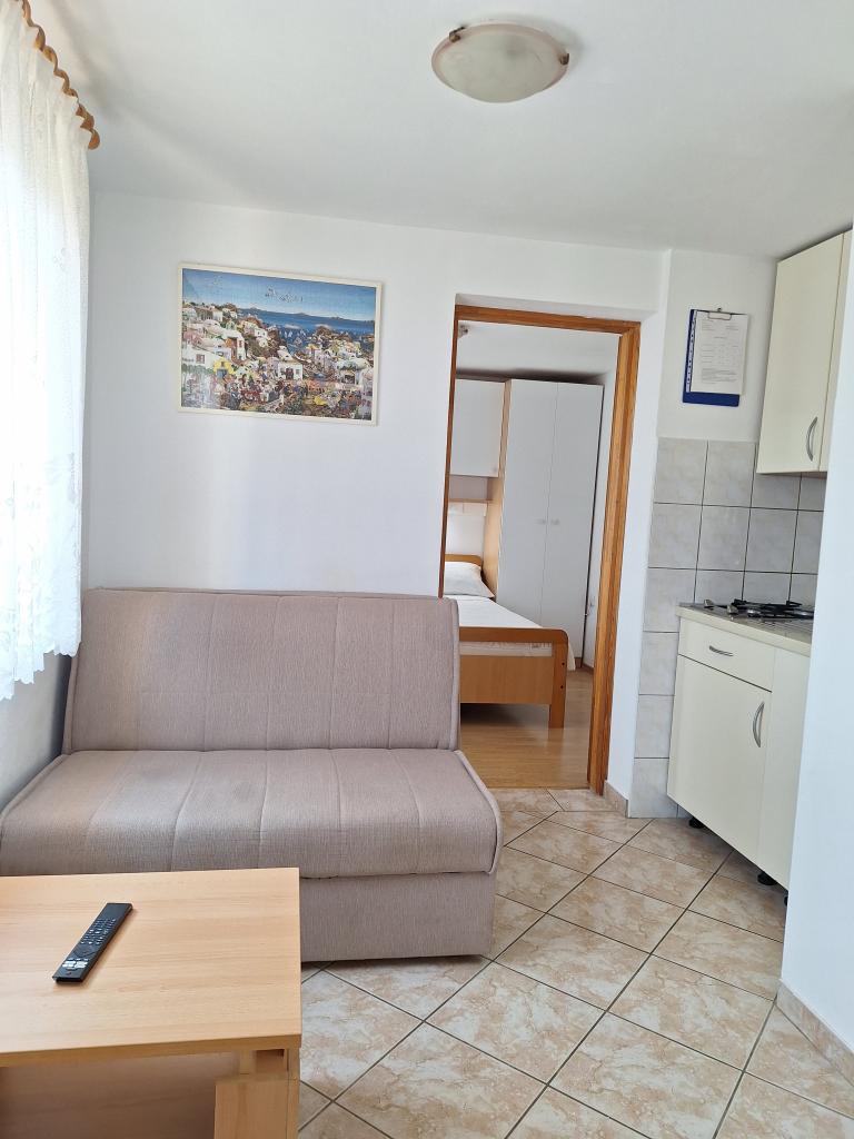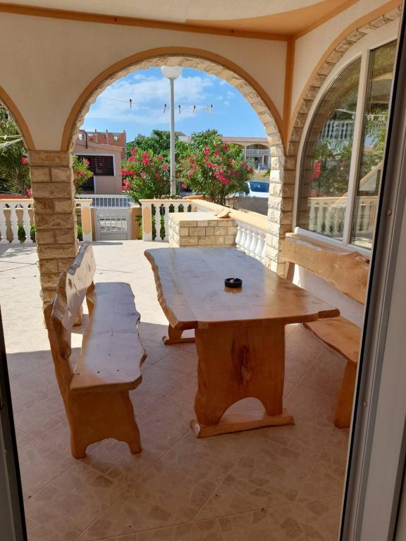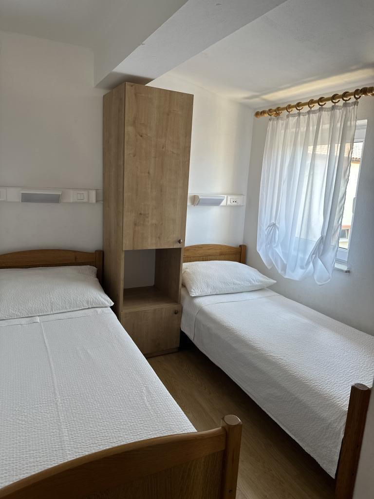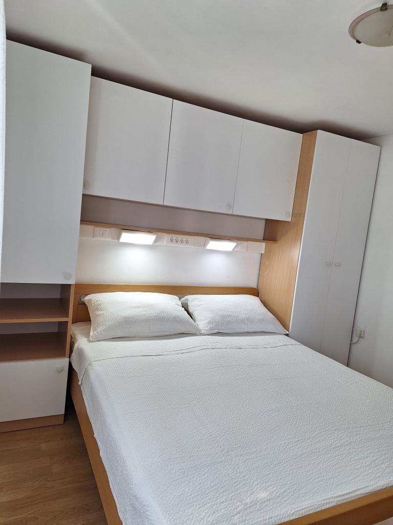 Er zijn drie appartementen in het huis. Twee ervan hebben twee slaapkamers, een woonkamer, een keuken, een badkamer en een groot overdekt terras. Elke kamer heeft één kamer met een tweepersoonsbed, en de andere kamer heeft twee eenpersoonsbedden. Het derde appartement heeft een slaapkamer met een tweepersoonsbed, een keuken, een badkamer en een groot overdekt terras. Alle kamers zijn voorzien van beddengoed. De keukens zijn uitgerust met servies om eten te koken en te serveren, evenals een magnetron en een waterkoker. Elk appartement beschikt over airconditioning, die bij de prijs is inbegrepen. Alle appartementen hebben een aparte ingang. Er is een parkeerplaats bij het huis die voor alle gasten beschikbaar is. Er kan ook gebruik worden gemaakt van een barbecue. Het strand Žitna uvala ligt op 80 meter afstand. Het strand is kiezelstrand en de zee is zanderig. Langs het strand lopen een promenade en een fietspad, en er zijn diverse cafés, restaurants, banketbakkers en bakkerijen. Er zijn verschillende winkels binnen 100 meter. Het centrum van Vir ligt op 1800m afstand.