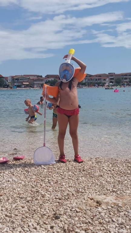 Ik verhuur een onlangs gerenoveerd tweekamerappartement met airconditioning, volledig ingericht voor een gezin van maximaal 4 personen. Het appartement beschikt over twee slaapkamers, een woonkamer met een bed, tv/satelliet, smart-tv en wifi. De keuken is volledig uitgerust met serviesgoed. Er is een badkamer met douche en een binnendouche. Het appartement heeft een groot terras/balkon waar u tot laat in de middag van de aangename schaduw kunt genieten. Er is gratis parkeergelegenheid voor uw auto (wasservice op aanvraag). Een barbecue is beschikbaar voor gasten. Het appartement ligt op 150 meter van het strand/de zee, op 4 minuten loopafstand. Het strand bestaat uit kiezels, vlakbij is een zandstrand voor kinderen, waar zich cafés, restaurants en een ijssalon bevinden. Een winkel ligt op 100 meter afstand, een restaurant op 80 meter en grotere winkelcentra op 1000 meter. Het centrum van Vir ligt op 1500 meter afstand. Het appartement is gelegen in een rustige buurt, aan een stille straat.