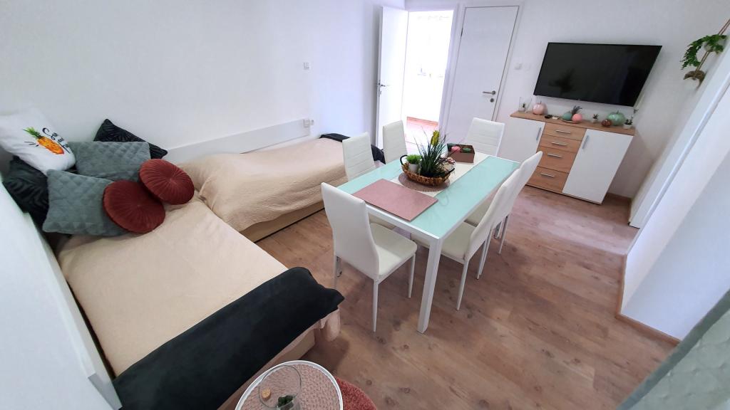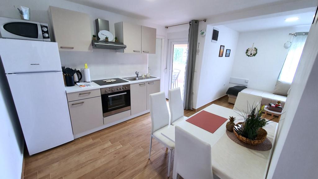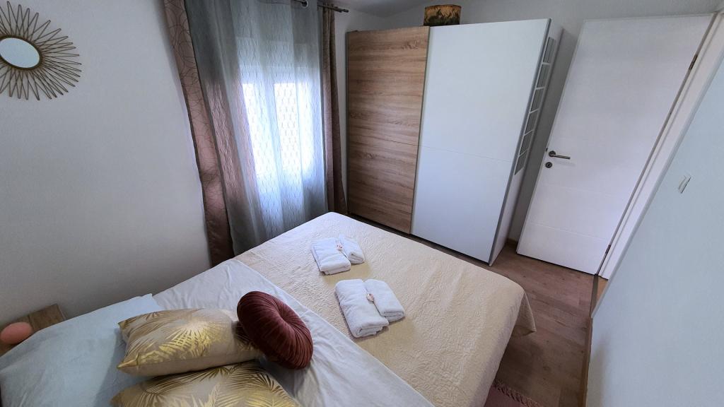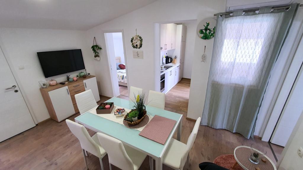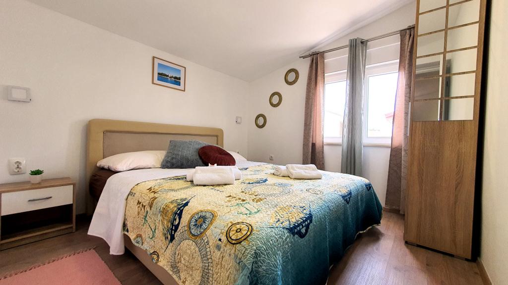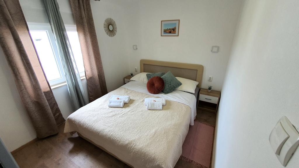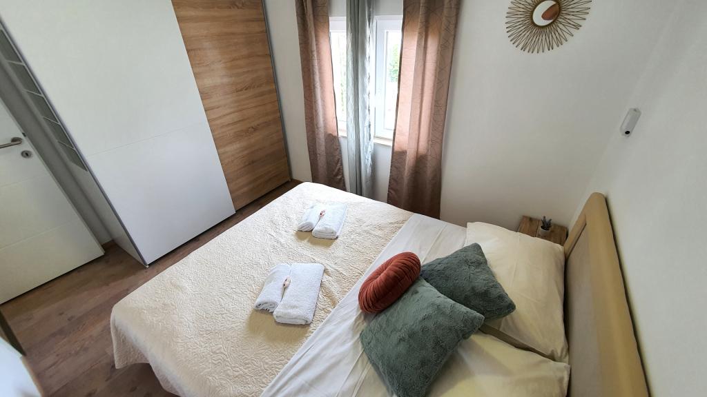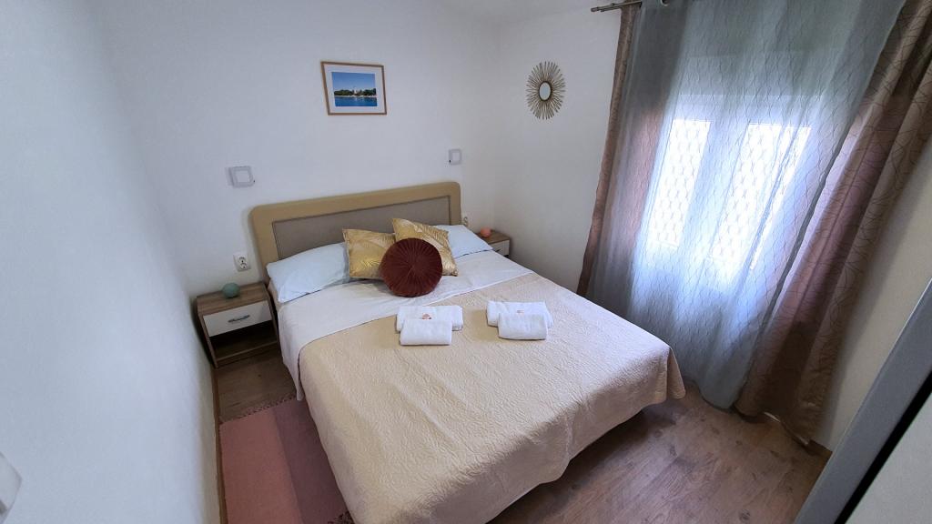 De nieuw ingerichte, moderne appartementen op het eiland Vir zijn uitgerust met alles wat u nodig heeft voor een aangename en ontspannen vakantie. De appartementen bevinden zich op de eerste verdieping van het familiehuis en beschikken elk over een eigen groot terras, een volledig uitgeruste keuken, badkamer en slaapkamer en een bijbehorende parkeerplaats met 24-uurs videobewaking voor de veiligheid van uw auto. De appartementen zijn gelegen in een rustig deel van het eiland, zonder nachtlawaai, en zijn geschikt voor kinderen om te spelen. Veel stranden hebben een zandbodem en zijn op de meeste plaatsen erg ondiep, waardoor ze een ideale keuze zijn voor ouders met kinderen. In de buurt zijn diverse stranden, boulevards en alle andere voorzieningen zoals winkels, bakkerijen, cafés, restaurants, apotheken, klinieken, kerken, postkantoren en busstations. Alle voorzieningen zijn op loopafstand en u hoeft tijdens uw verblijf geen auto te gebruiken. Alle appartementen beschikken over wifi, airconditioning en een wasmachine, die bij de prijs zijn inbegrepen. Voor meer informatie en vragen kunt u gerust contact met ons opnemen.