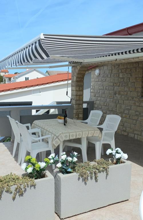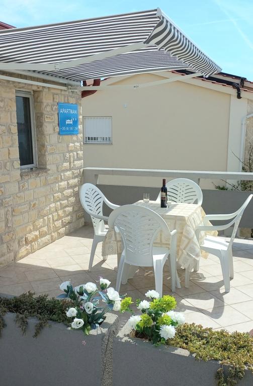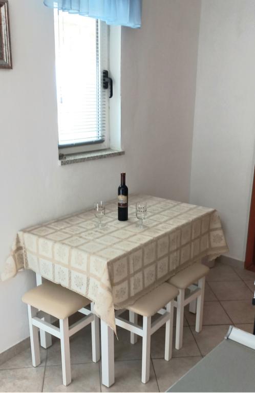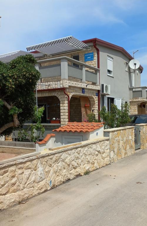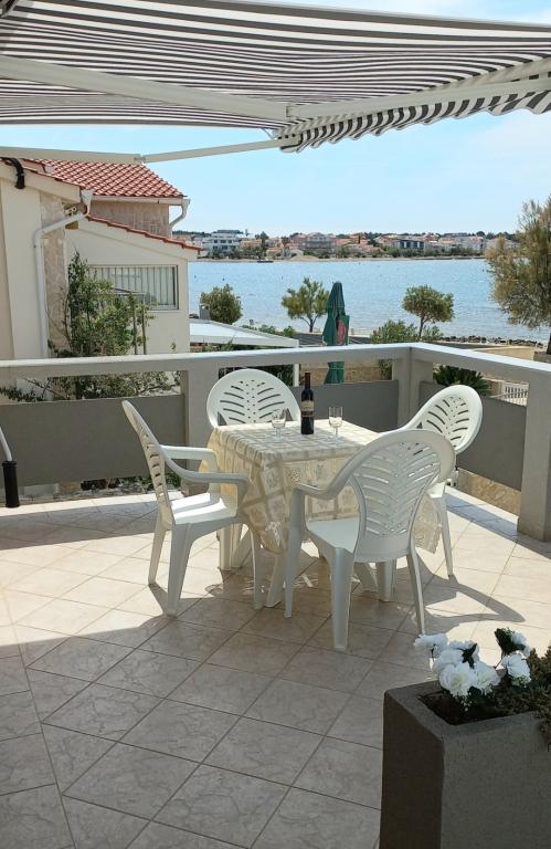 De appartementen bevinden zich op de eerste verdieping van het huis. Ze beschikken over een groot terras en uitzicht op zee. Ze zijn rustig gelegen. Ze liggen op de tweede rij aan zee, de afstand tot het strand en de zee is 20 meter. De parkeerplaats bevindt zich in de tuin van het huis en is alleen bedoeld voor kleinere voertuigen. Grotere voertuigen kunnen aan de oever worden geparkeerd. Gasten kunnen gebruikmaken van een barbecue, airconditioning, tv, satelliet-tv en wifi.