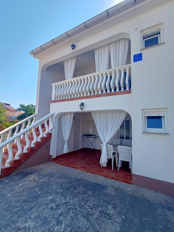 Nieuw ingerichte appartementen met een grote omheinde tuin, op het eiland Vir, dat door een brug met het vasteland is verbonden. Wij bieden drie appartementen aan. Elk appartement heeft een eigen terras. Barbecue te gebruiken. Ze zijn uitgerust met kwaliteitskeukens, lcd-tv met satelliet, airconditioning, wi-fi, koelkast met vriezer. Ligstoelen en parasols zijn aanwezig voor gebruik in het appartement. Het strand is kiezelstrand (glashelder), 80 meter van de accommodatie. Dichtbij winkels 150m. Het stadscentrum ligt op 3-5 minuten rijden met de auto. Accommodatie en omgeving ideaal voor een gezin, grote parkeergelegenheid op het erf. Uitzicht op zee, Pag en Velebit. Nabij Vir adrenaline park, plezier voor het hele gezin. 20 km naar de stad Zadar, die rijk is aan diverse inhoud. Toeristenbelasting bij de prijs inbegrepen.