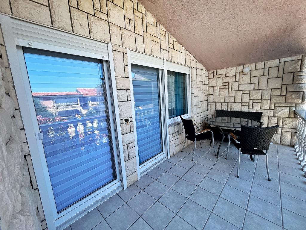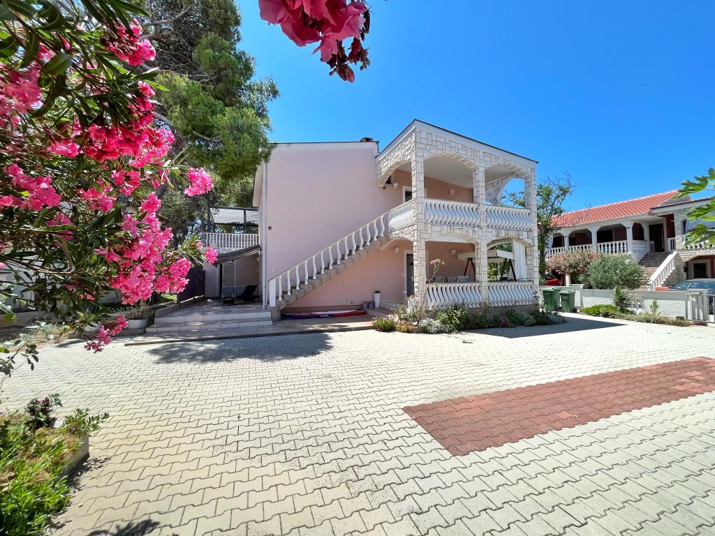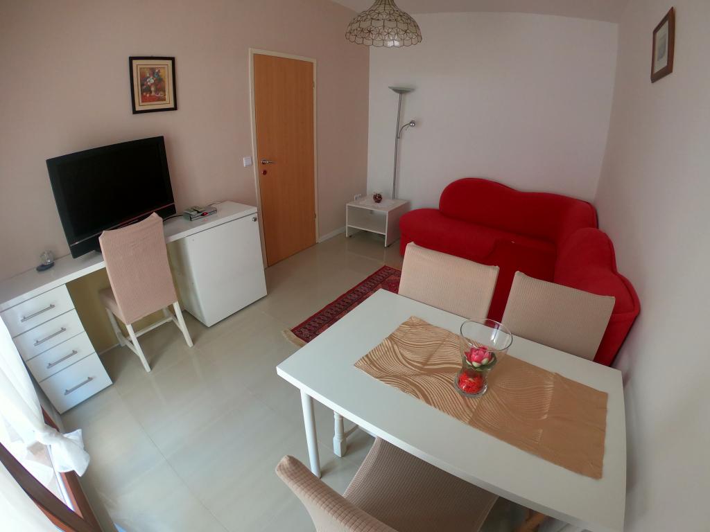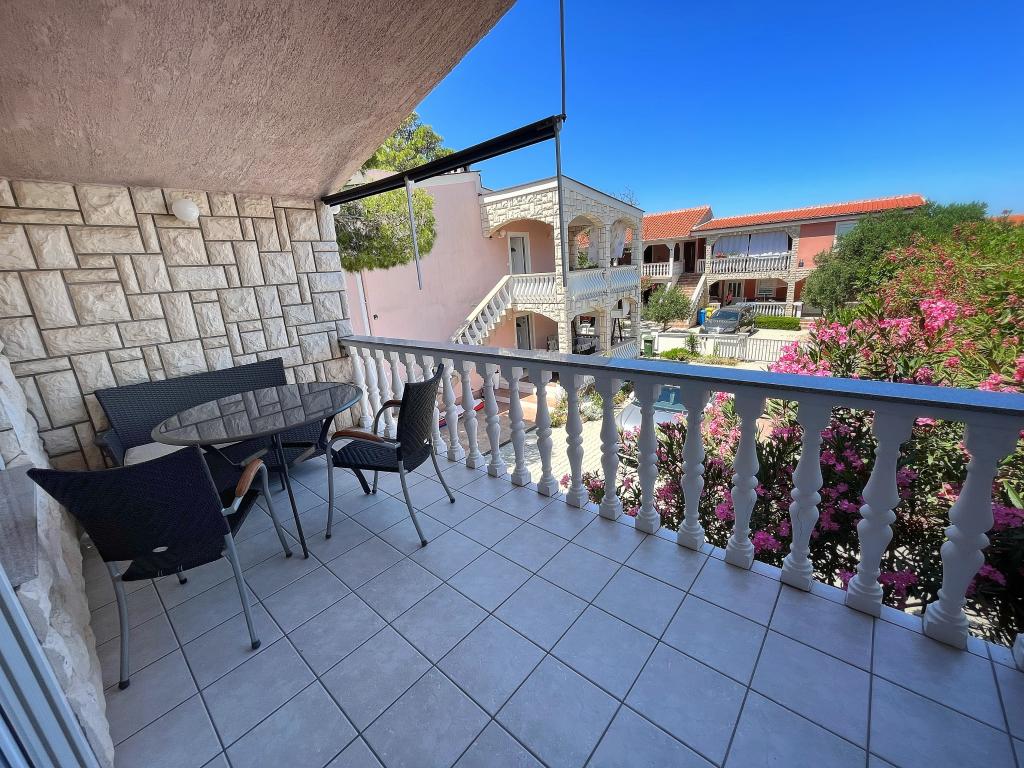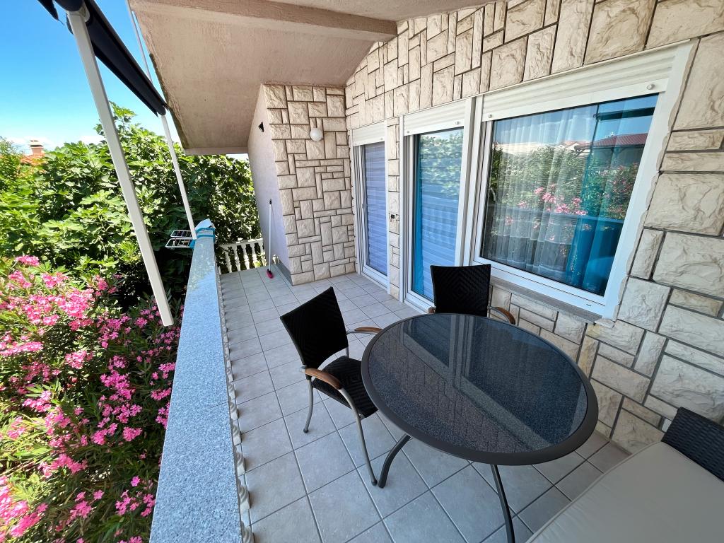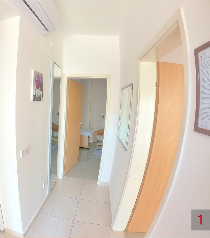 Appartement - 1 - bestaat uit twee aparte kamers, aparte keuken en badkamer. In de ene kamer staat een tweepersoonsbed, in de andere een hoekbank. Het appartement heeft een overdekt terras van 50 m2 omgeven door een dennenbos. Het grote voordeel van het appartement is de ligging aan het einde van een doodlopende, rustige en autoluwe straat, waardoor u gegarandeerd rust en privacy heeft. Een parkeerplaats is voorzien in het gebouw, evenals een grill om te barbecueën.