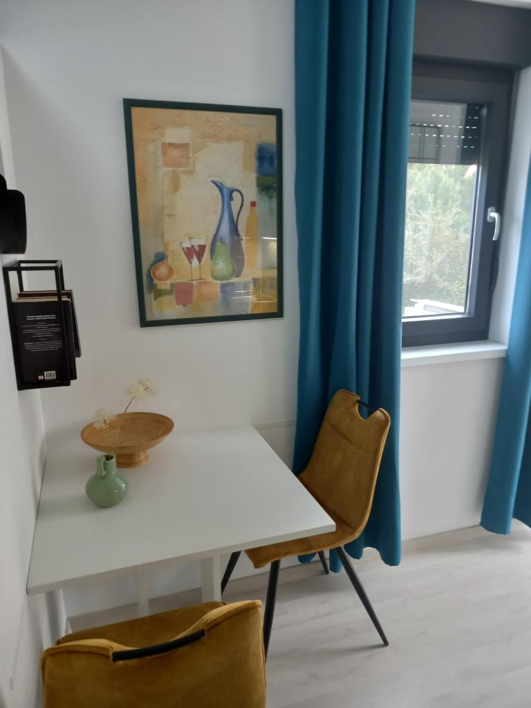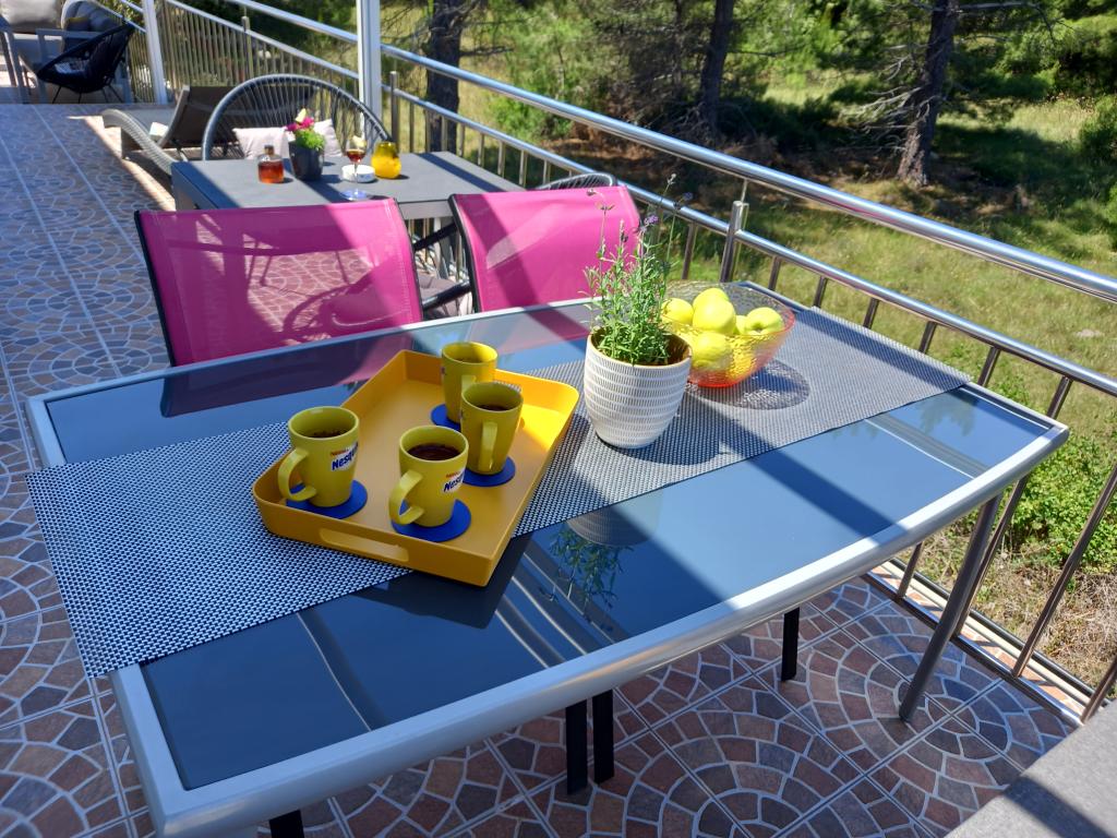 Het appartement is zeer netjes, modern en schoon. Ze hebben zelfs twee terrassen, waardoor er altijd wel ergens schaduw is. De eigenaren zijn erg vriendelijk, altijd beschikbaar, bij aankomst werden we begroet met een heerlijk welkom, inclusief warme zelfgemaakte croissants. De zee ligt op een minuut lopen, maar er is ook een steiger aan het strand waar jongeren heerlijk het water in kunnen springen. Ik raad aan! Tjasa
