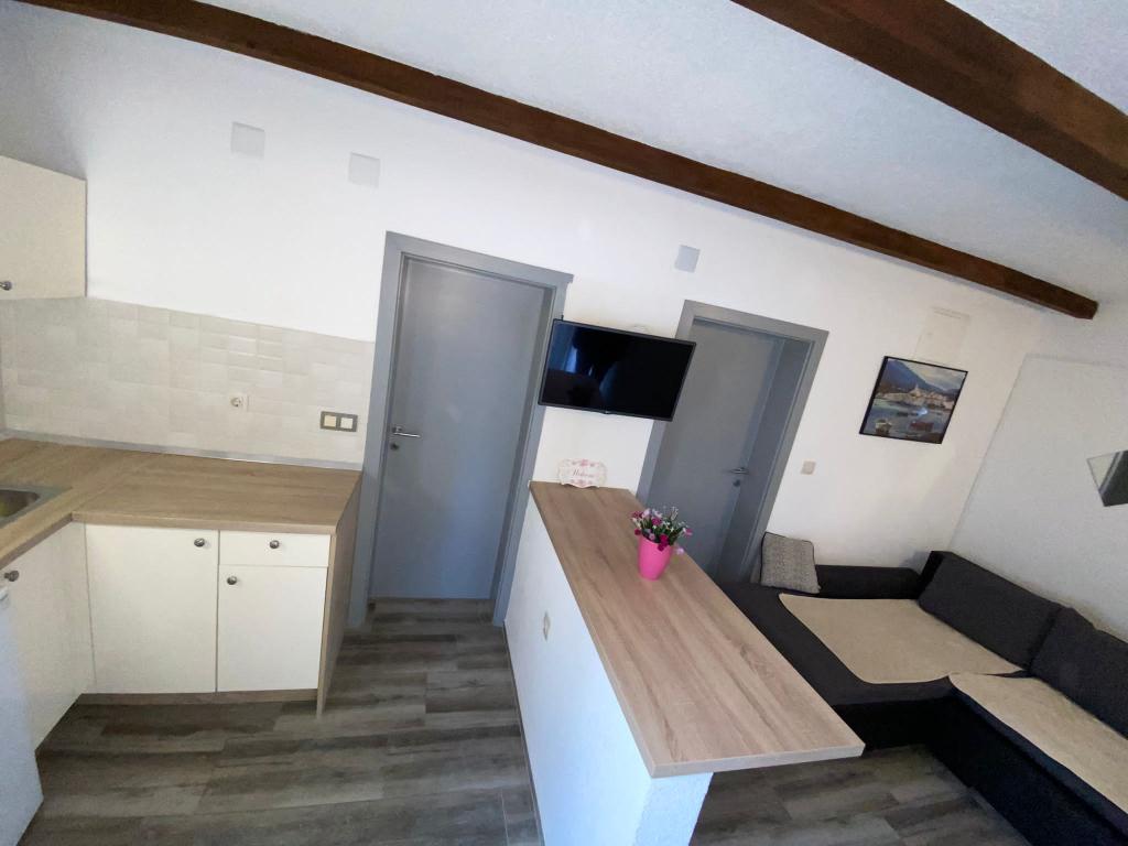 We waren aangenaam verrast door de kwaliteit en netheid van de accommodatie. Het appartement is ruim en goed uitgerust. Het strand ligt echt direct achter het huis en is bijna zonder mensen. Mevrouw Dragica is erg aardig en helpt u graag. We hebben helemaal niets gemist. Bedankt en we komen terug.