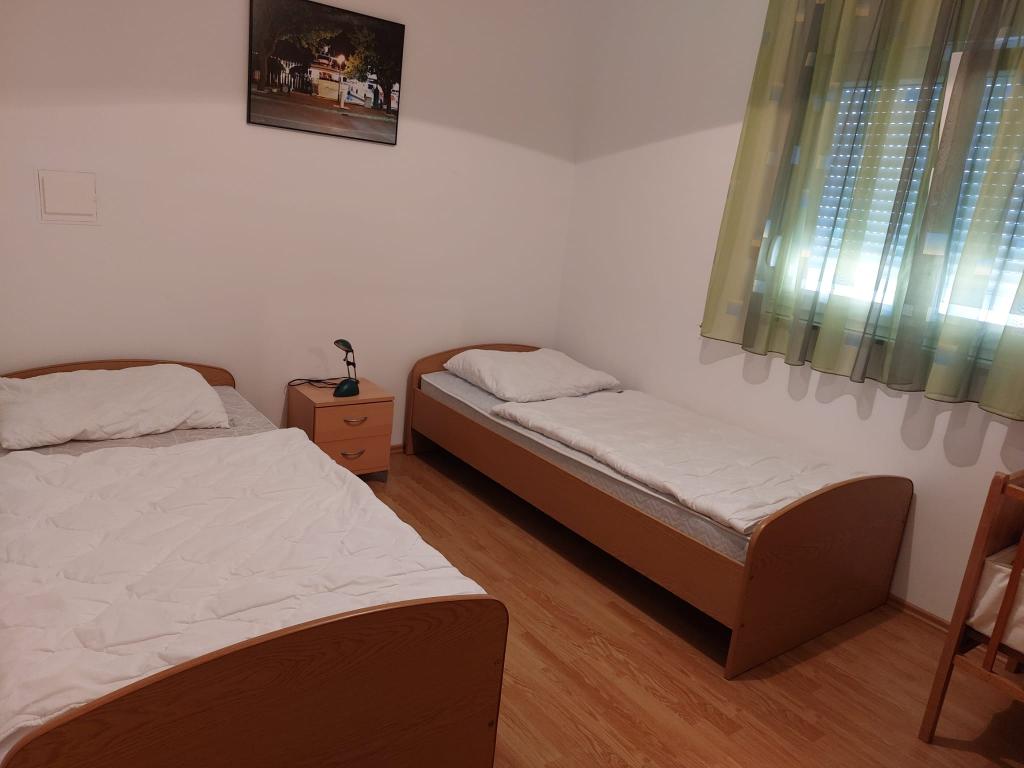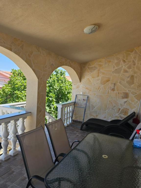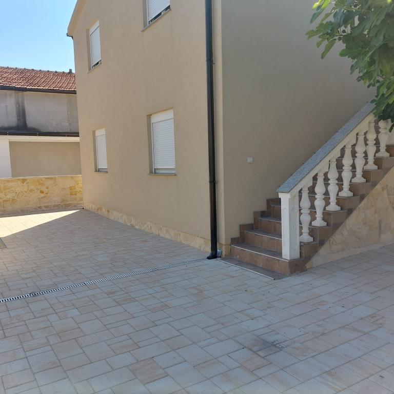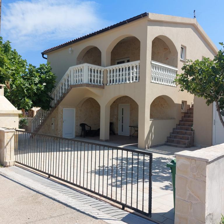 Twee appartementen te huur met ruime terrassen in een rustig deel van het eiland Vir. Geschikt voor koppels of gezinnen met kinderen. Het strand en alle essentiële voorzieningen bevinden zich op 300 meter van het gebouw. Elk appartement heeft twee parkeerplaatsen en de mogelijkheid om de oven te gebruiken.