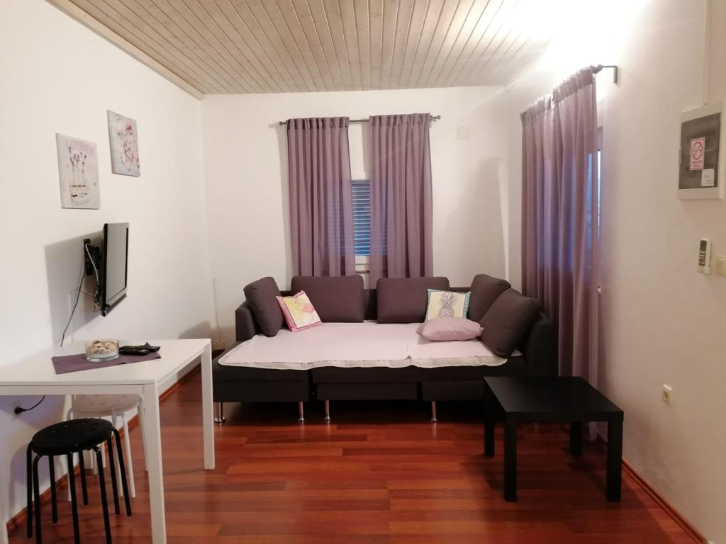 Appartement was ruim en zeer schoon. Perfect uitgerust - in de keuken vindt u alles wat u nodig heeft om een diner te bereiden, zijn muskietennetten in de ramen en de geleverde handdoeken zijn in verschillende kleuren (dit vond ik het leukst), niet meer raden welke van de 4 witte handdoeken in de mijne . Er zijn slechts 2 appartementen in het huis en de eigenaar (zeer behulpzaam en vriendelijk) is op het terrein, dus je voelt je niet als een no-name cash provider, maar als een verwachte gast. Huis gelegen in niet-drukke, rustige deel van Vir, geen disco's, supermarkten of restaurants in de omgeving.