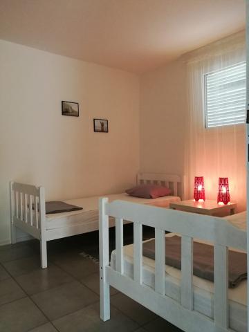 De appartementen zijn gelegen in een rustiger deel van het eiland. App 2 2 bevindt zich op de eerste verdieping, heeft gedeeltelijk zeezicht en een groot terras. App 4 2 bevindt zich op de begane grond en heeft een groot terras. Er zijn 2-3 parkeerplaatsen voorzien. Het is geschikt voor gezinnen met kinderen vanwege de omheinde tuin en de nabijheid van het strand (200 meter van het appartement).