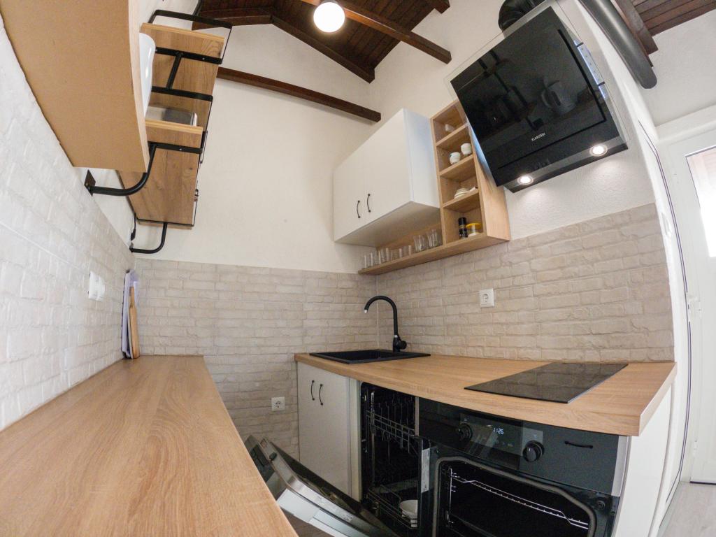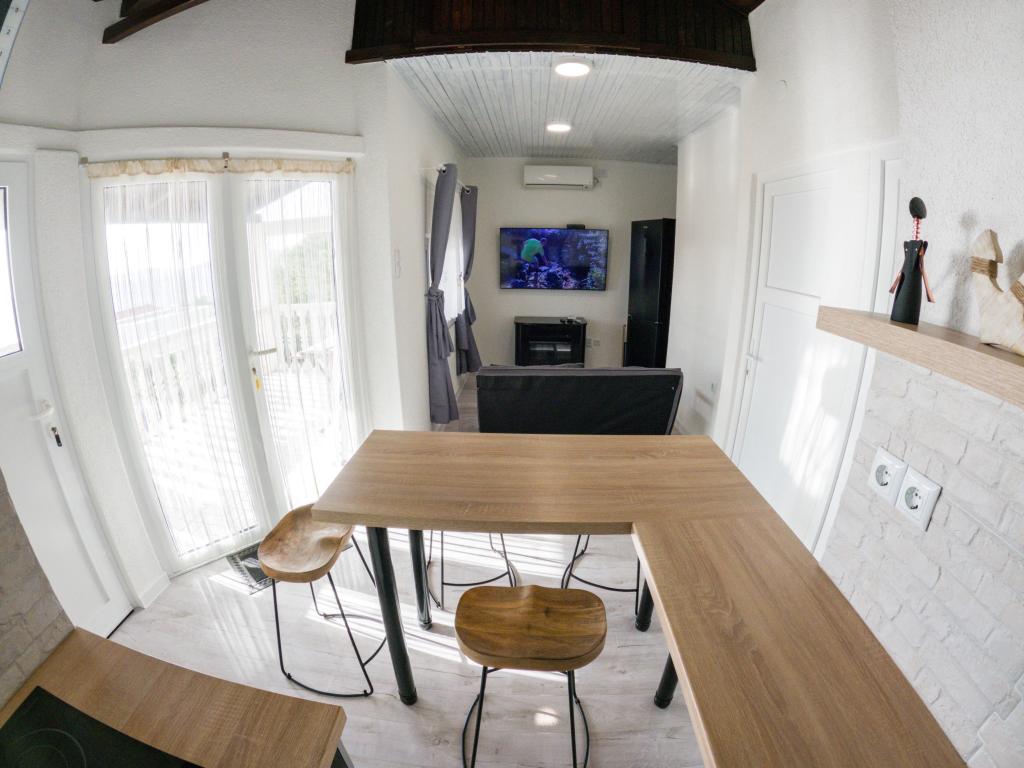 De appartementen Ivona en Daria zijn gloednieuw, modern uitgerust in een rustige familiale omgeving met uitzicht op de zee, en bevinden zich naast de baai van Milna in de nederzetting Ženka 82 op het eiland Vis. Het appartement ligt op 50 meter van de zee en het eerste kiezelstrand, en op 700 meter van het eerste zandstrand. De eerste winkel in Podstražje ligt op 2 kilometer van het appartement en de stad Vis ligt op 8 kilometer afstand. De gastheren wonen in de kelder van het huis, Daria's appartement "B" bevindt zich op de begane grond en Ivona's appartement "A" bevindt zich op de eerste verdieping. Elk appartement heeft een woonkamer met keuken en eetkamer, twee aparte slaapkamers, een badkamer en een groot overdekt terras. Daarnaast beschikt elk appartement over airconditioning, internet, satelliet-tv, ingerichte keuken (koelkast/vriezer, keramische kookplaat, afzuigkap, vaatwasser, magnetron, broodrooster, waterkoker), draagbare elektrische grill op het terras, handdoeken en beddengoed en beveiligde parkeerplaats . Roken is toegestaan, huisdieren zijn niet toegestaan.