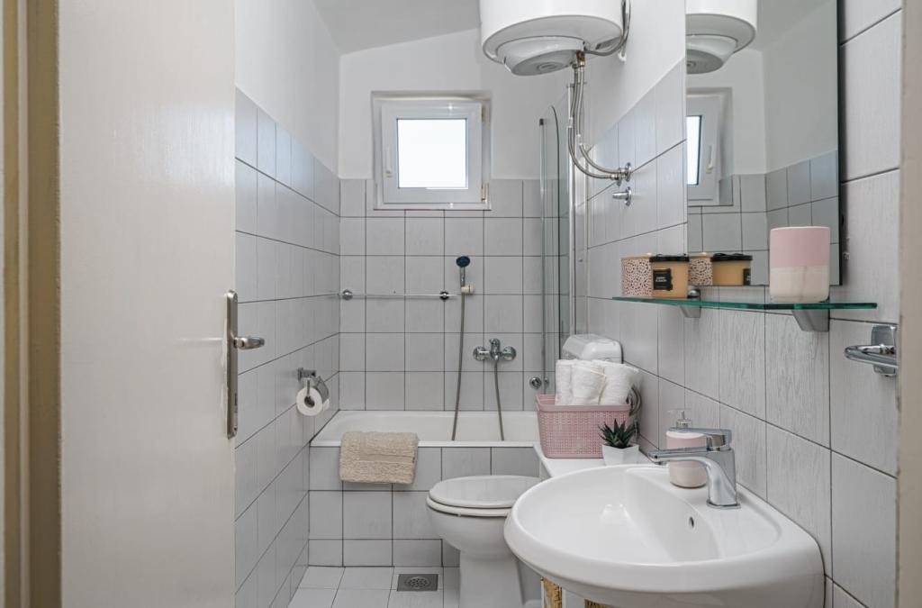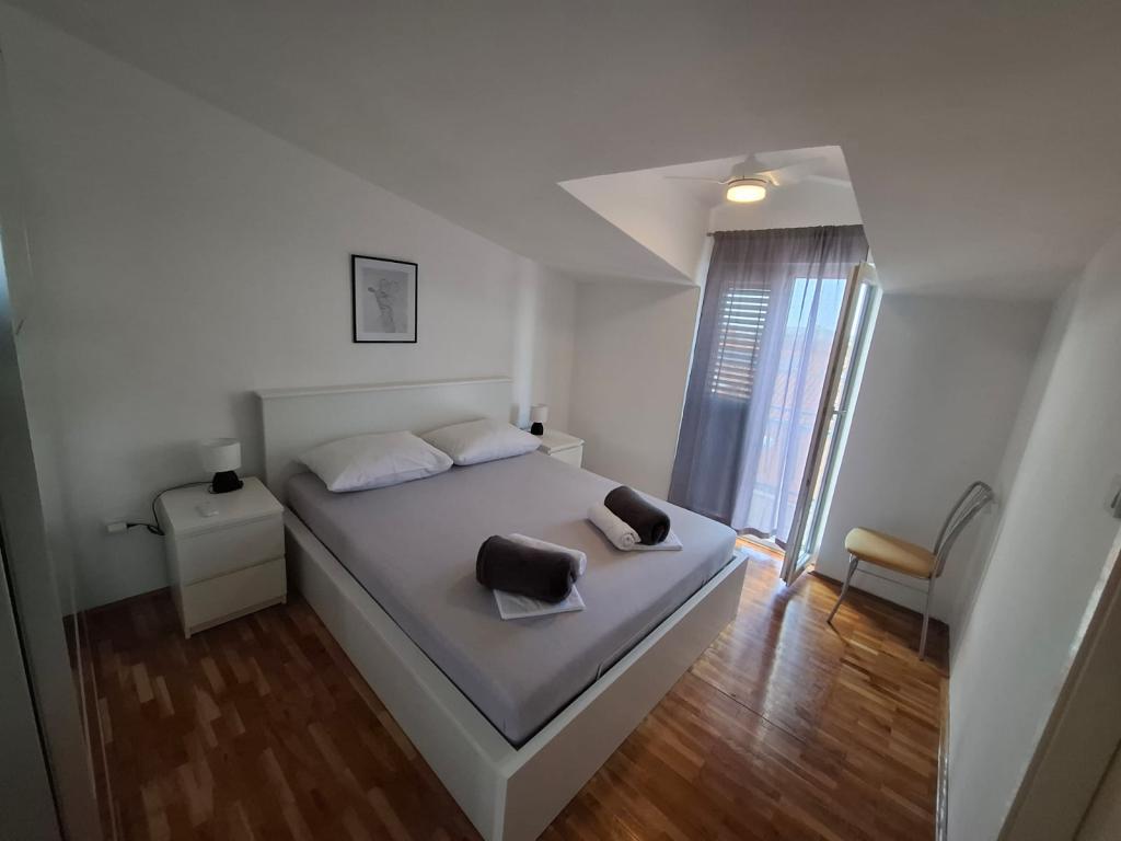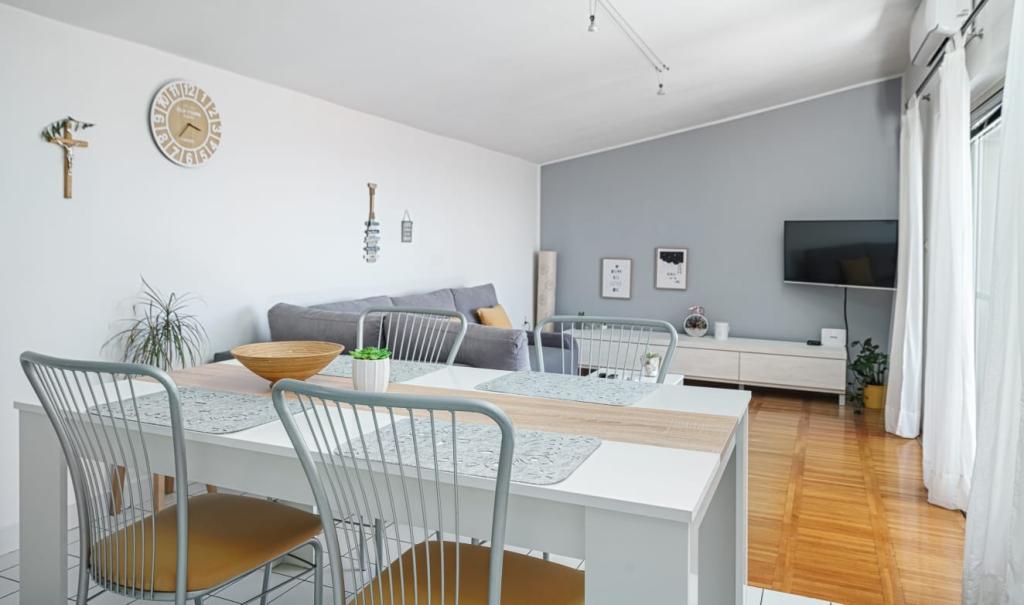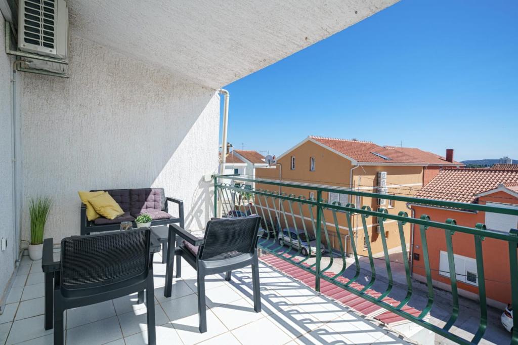Appartement voor vier personen, twee slaapkamers, een ruime woonkamer met keuken, een badkamer en een groot balkon. Het appartement is 65 m² groot. De accommodatie is gelegen in een rustig deel van de stad. Op tien minuten lopen van het strand en het centrum.