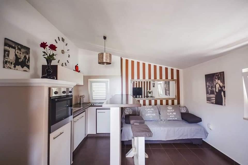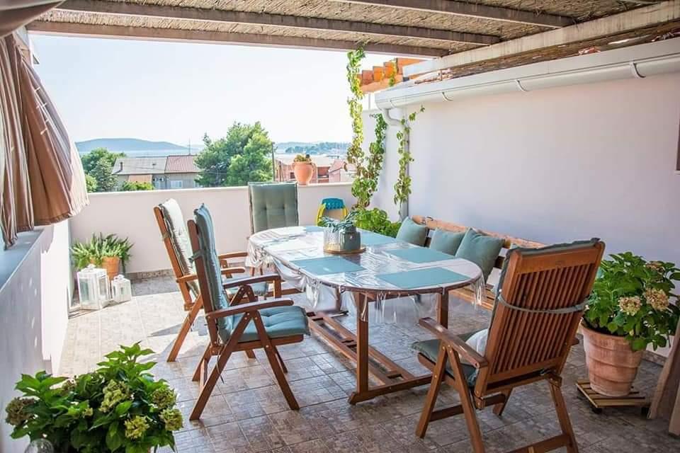 Volledig gemeubileerde appartementen, gelegen in een rustige buurt van Vodice, op de tweede rij vanaf de zee. De accommodatie ligt op 3 minuten lopen van het hoofdstrand en op 10 minuten van het centrum. Het voordeel van onze appartementen is dat alles dichtbij is, dus u hoeft de auto niet te gebruiken. De appartementen hebben een prachtig, groot terras vanwaar u uitzicht heeft op de zee, de eilanden en het centrum. De gehele verdieping kan worden gehuurd voor 9 personen, ideaal voor een groot gezin.