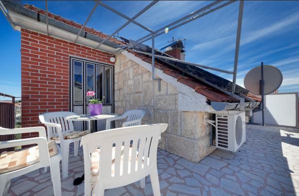 Volledig en modern ingerichte appartementen in een rustige wijk van Vodice, op 300 meter van de zee. De faciliteit ligt op 5 minuten lopen van Blue Beach en Punta Hotel, en op 15 minuten van het centrum van Vodice. Aan het strand ligt het grootste aquapark aan de Adriatische Zee, bedoeld voor kinderen en volwassenen. Wij bieden accommodatie van hoge kwaliteit in nieuwe, volledig uitgeruste en moderne appartementen. De bovenwoning van 48 m2 bestaat uit een slaapkamer, een badkamer met douche, een keuken met een eetkamer, een woonkamer met een bed, twee terrassen met uitzicht op zee, twee LCD TV/SAT ontvangers, airconditioning, gratis WiFi internet en een parkeerplaats. Het grotere appartement op de begane grond van 70m2 bestaat uit twee slaapkamers, badkamer met douche, keuken, eetkamer, woonkamer met bed, twee grote terrassen, drie LCD TV/SAT ontvangers, airconditioning, gratis WiFi internet en twee parkeerplaatsen ruimtes.