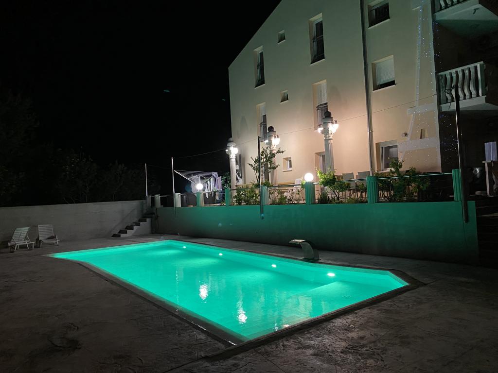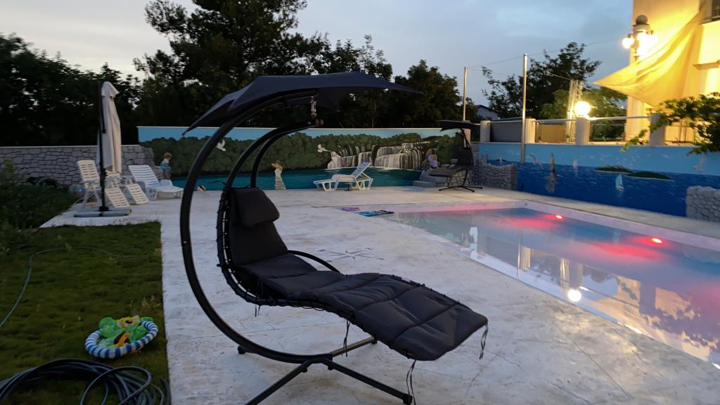 Uitbreiding van het recreatiegebied tot 1260 m² voor diverse sportactiviteiten. Naast de nieuwe inrichting krijgen appartementen IVAN V ook het woord RELAX. Het nieuwe zwembad met verwarmd zout water is in gebruik, evenals een jacuzzi voor alle gasten. Gevaccineerd tegen Covid-19. Wij sturen bevestigingen van de reserveringsbetaling. Alle bestaande gasten krijgen 10% korting op de standaardtermijn voor die periode, evenals gasten uit Zenica; de korting kan niet worden gecumuleerd met andere kortingen. Elk appartement heeft recht op gebruik van het zwembad en de jacuzzi op de binnenplaats van het complex. De capaciteit van het complex is 18 bedden. Vervoer naar de luchthaven van Split of Zadar (50 km) is mogelijk tegen een toeslag.