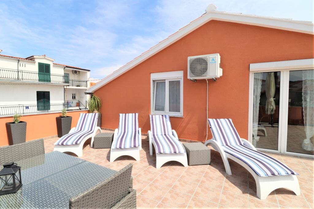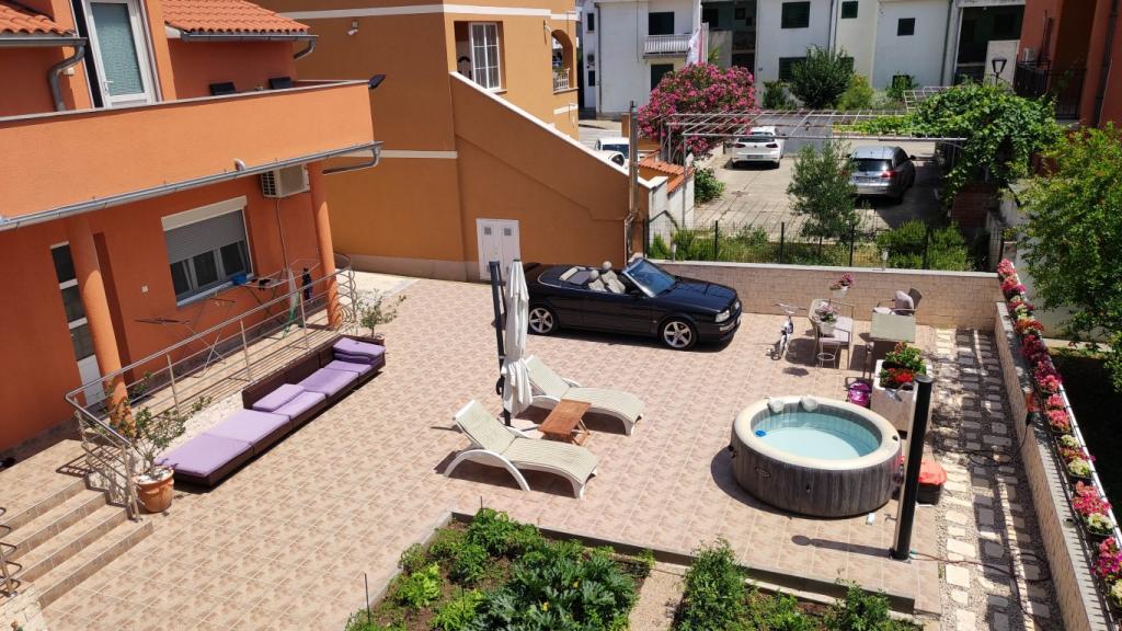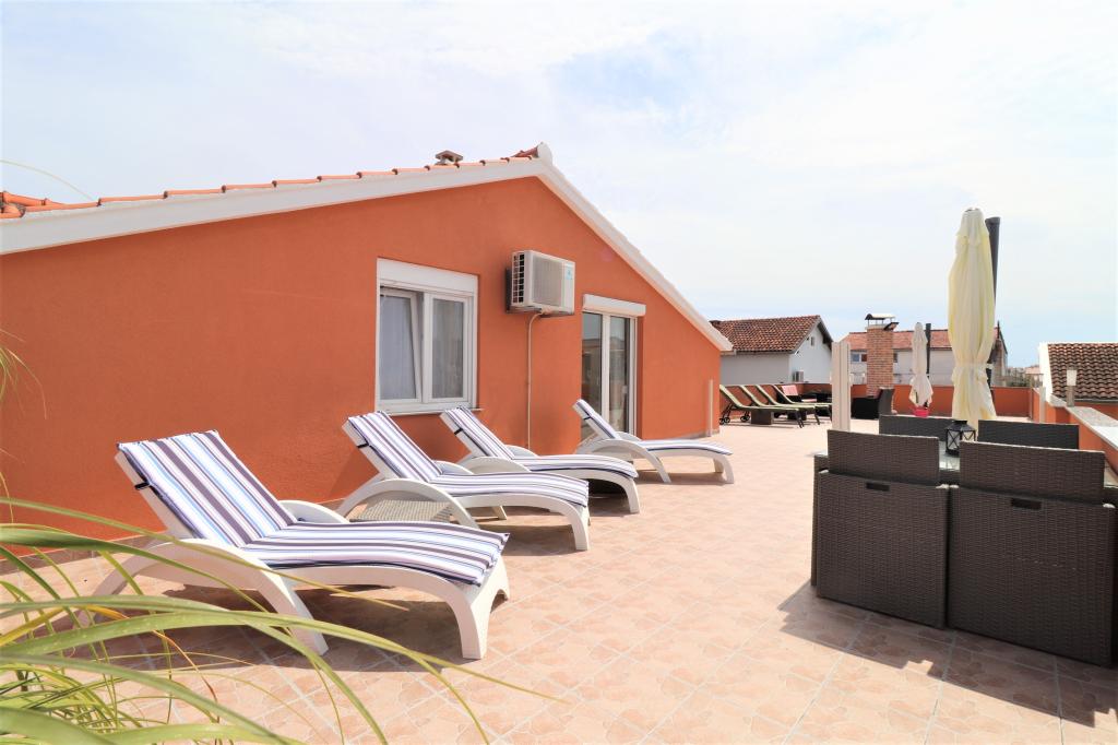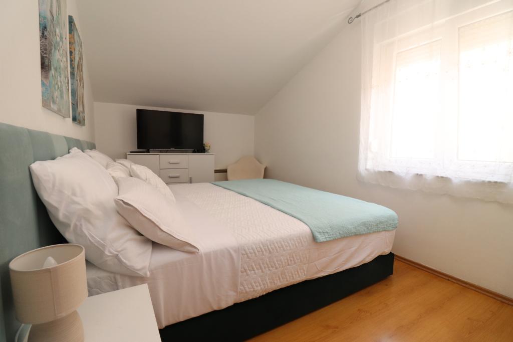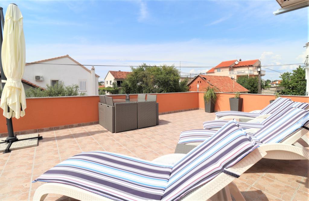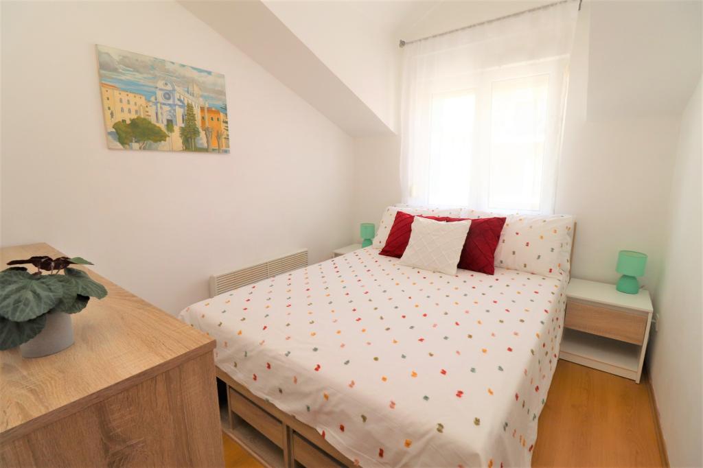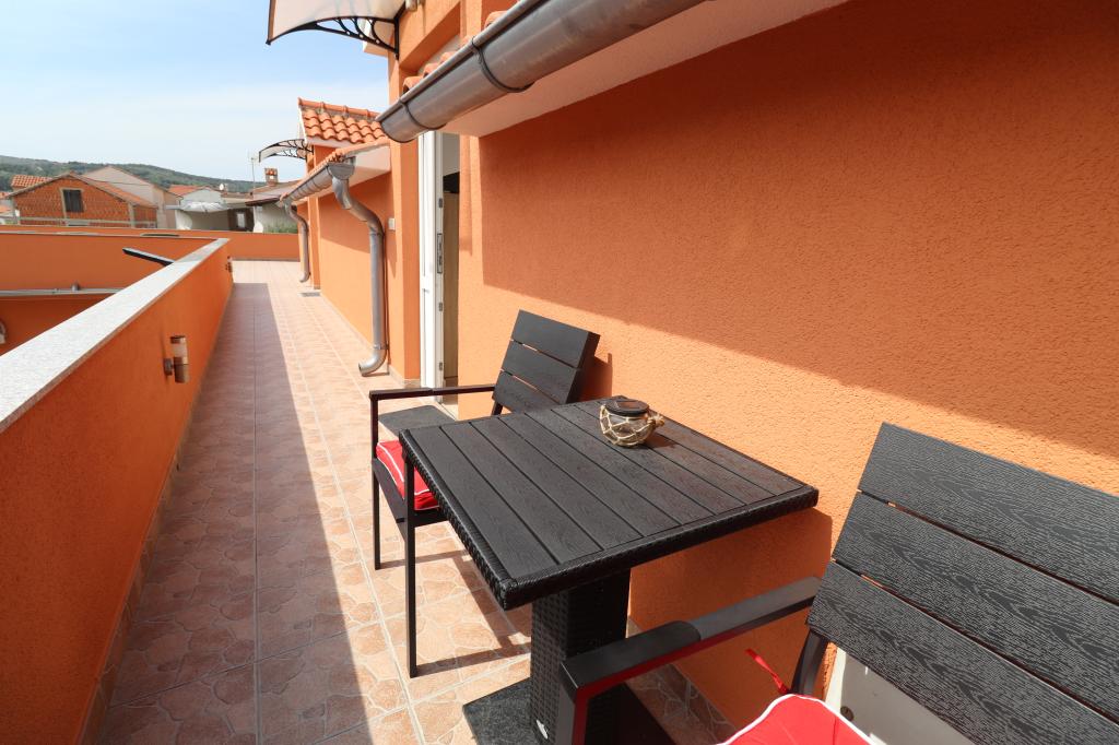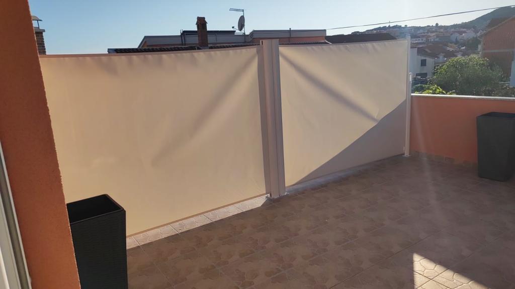 Volledig ingerichte appartementen in een rustige buurt van Vodice met een groot terras en tuin. De appartementen bevinden zich op de bovenste verdieping van het gezinshuis. Het terras kan indien nodig worden afgescheiden met een zijluifel. In de tuin is er een jacuzzi en een grill. Huisdieren zijn welkom. Er is een parkeerplaats voor twee auto's voorzien. De stranden liggen op ongeveer 15 minuten lopen. Verblijfsbelasting is bij de prijs inbegrepen. Mogelijkheid tot vervoer vanaf de luchthavens van Zadar en Split.