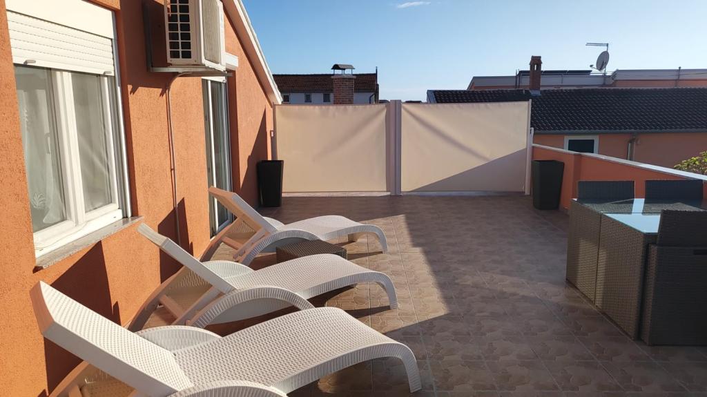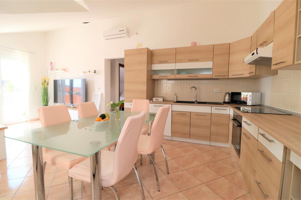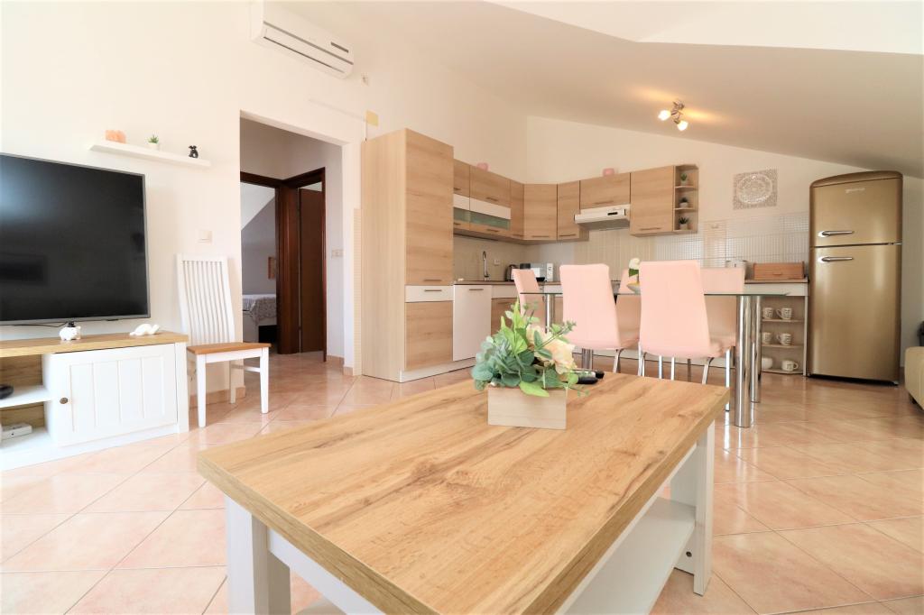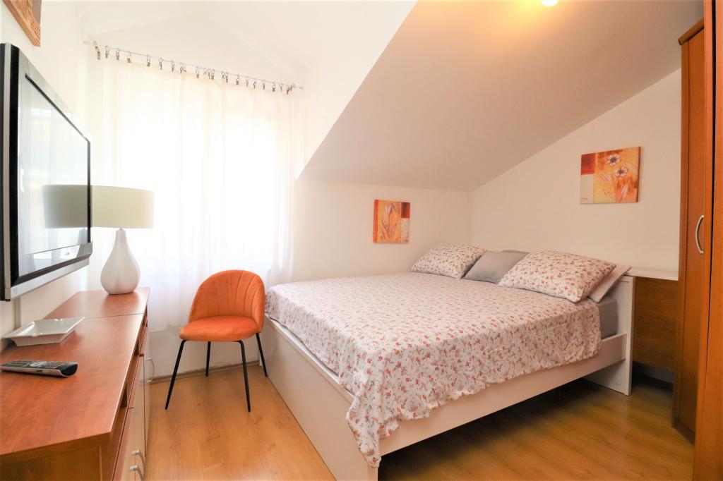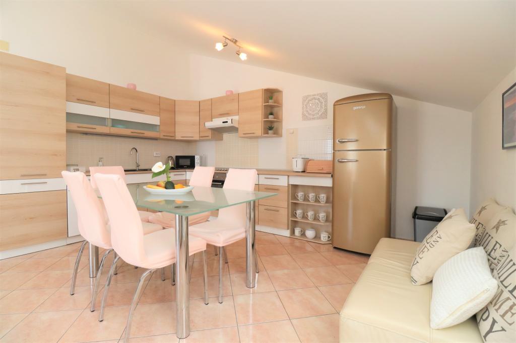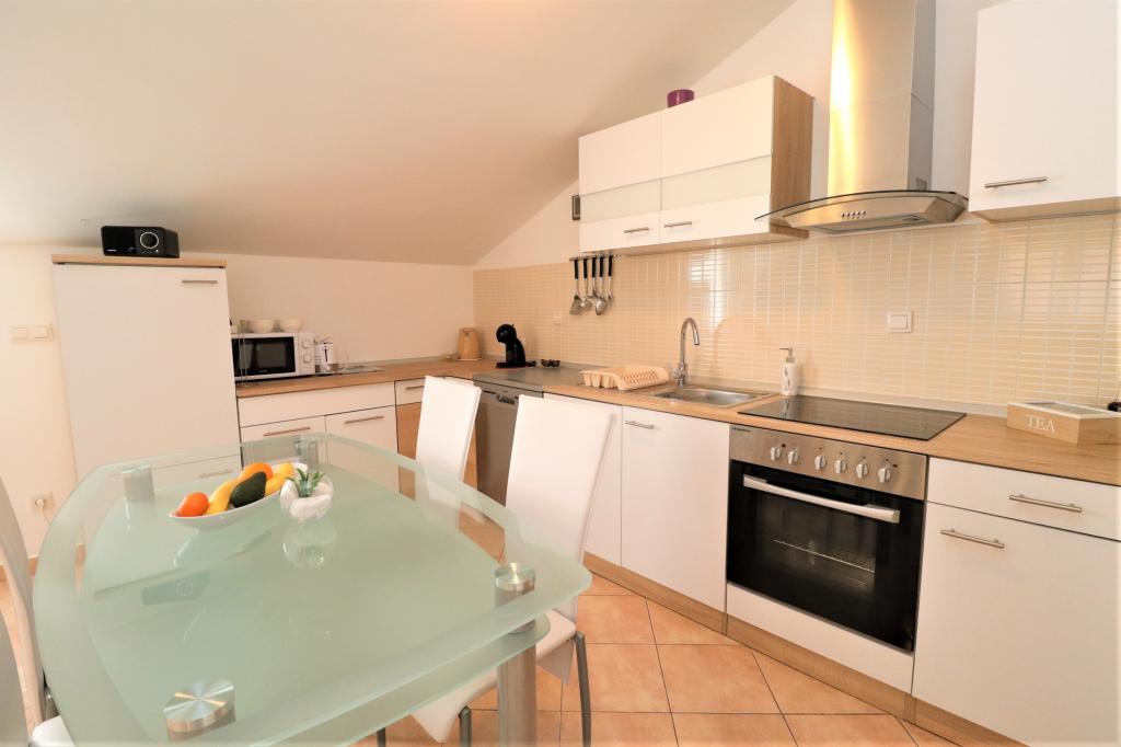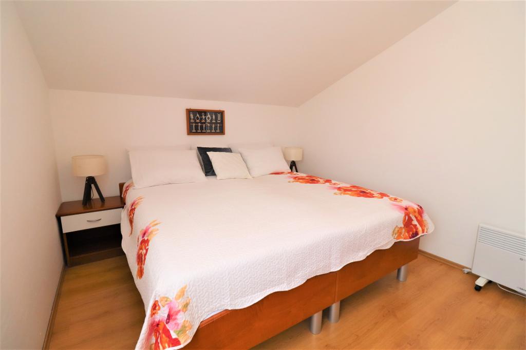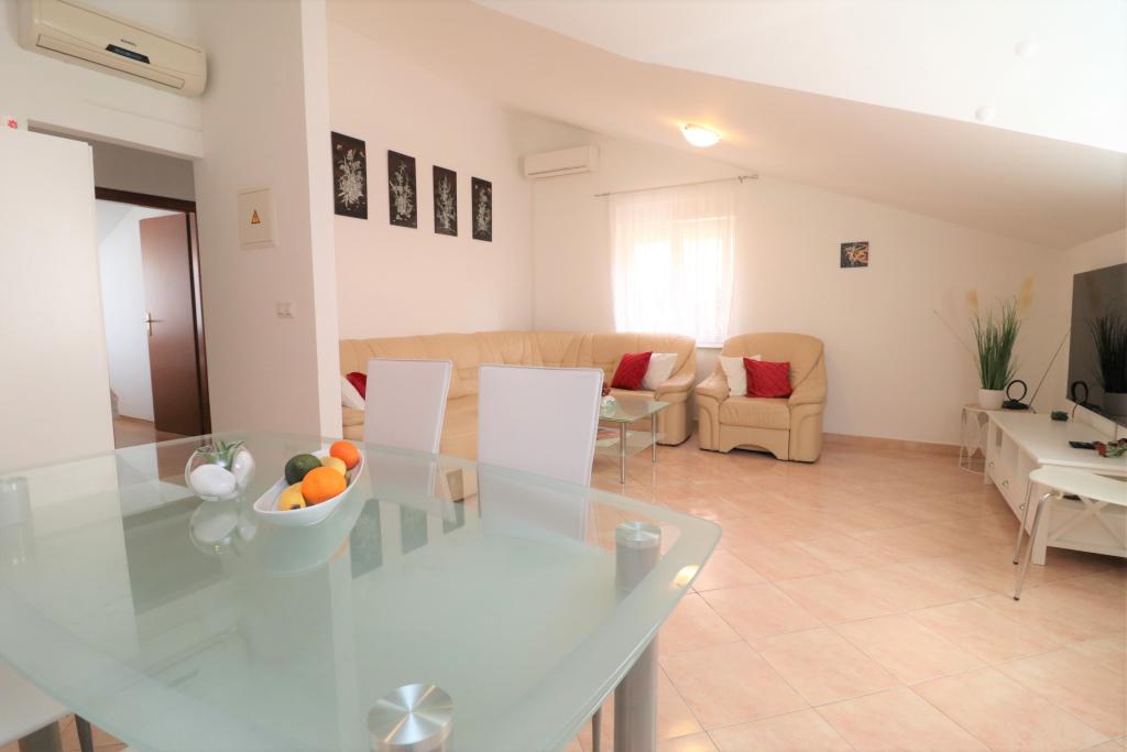 Volledig ingerichte appartementen in een rustige buurt van Vodice met een groot terras en tuin. De appartementen bevinden zich op de bovenste verdieping van het gezinshuis. Het terras kan indien nodig worden afgescheiden met een zijluifel. In de tuin is er een jacuzzi en een grill. Huisdieren zijn welkom. Er is een parkeerplaats voor twee auto's voorzien. De stranden liggen op ongeveer 15 minuten lopen. Verblijfsbelasting is bij de prijs inbegrepen. Mogelijkheid tot vervoer vanaf de luchthavens van Zadar en Split.