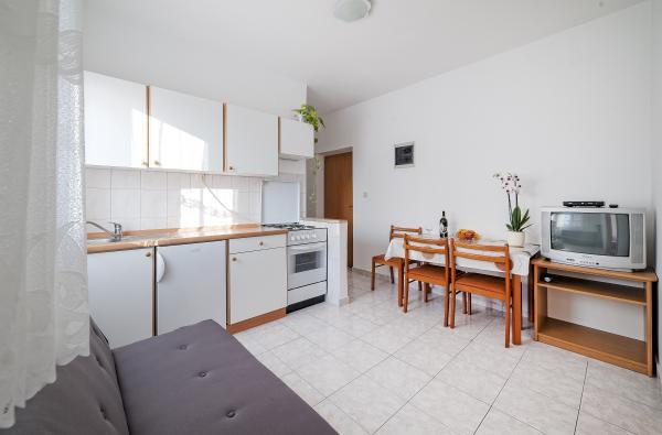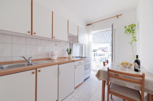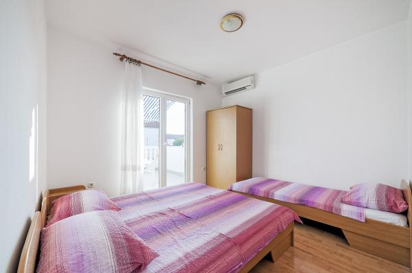 Volledig ingerichte appartementen, 1e verdieping van een gezinswoning, in een rustiger deel van Vodice. Het belangrijkste strand ligt op 5 minuten lopen, het stadscentrum op 10 minuten lopen. Het strand biedt veel inhoud van sport en recreatie, amusement en veel inhoud voor kinderen. De winkel bevindt zich op de begane grond van hetzelfde huis. Een tankstation, restaurants, cafés en andere voorzieningen zijn binnen handbereik, dwz u heeft geen auto nodig om u te verplaatsen.