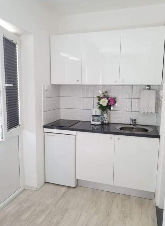 Verscholen klein, zeer functioneel en schoon studio-appartement met een comfortabel bed, goed uitgeruste keuken. Je hebt echt alles wat je nodig zou kunnen hebben. Het ligt op een paar minuten van het dichtstbijzijnde strand waar u cafés en restaurants heeft, en op tien minuten lopen van het stadscentrum, maar toch in een zeer rustige omgeving waar u heerlijk kunt slapen en uitrusten. De eigenaar, Milena, is een geweldige, jonge en uiterst onopvallende en gedienstige vrouw, die haar best doet om u van dienst te zijn. Wij komen graag nog eens terug