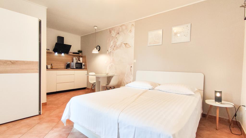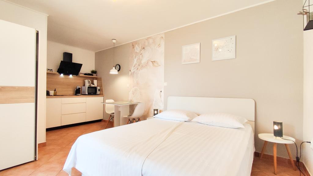 We boekten A4 Deluxe. Het appartement is zeer ruim en heeft alles wat je nodig hebt om je op je gemak te voelen. De eigenaresse Marija is super aardig. Verwende ons met sap, wijn en vers geploegde vijgen. Ik kan deze accommodatie absoluut aanbevelen.