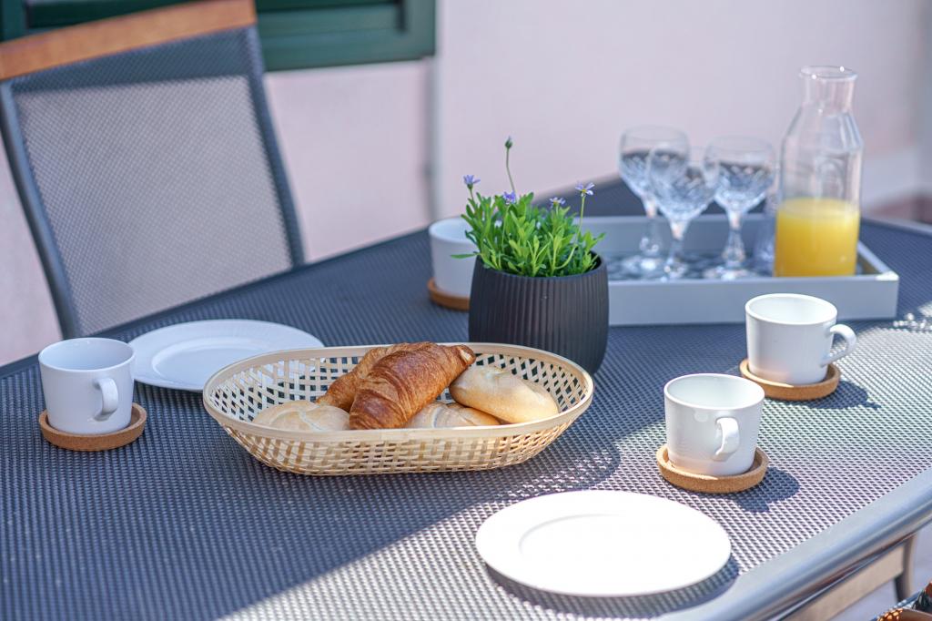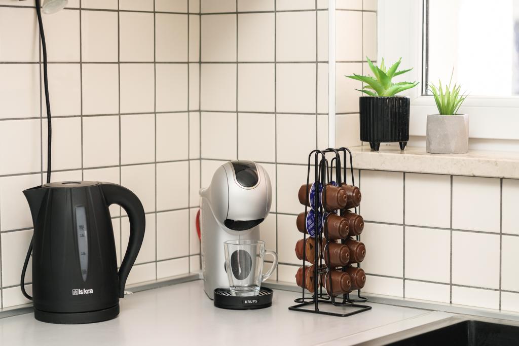 Naast de basisbenodigdheden zoals kruiden, olie, azijn en afwasmiddel, beschikt het appartement ook over extra apparatuur voor uw comfort. Het koffiezetapparaat is voorzien van capsules en voor het wassen van kleding en vaat zijn er tabletten en capsules aanwezig, die u bij de betreffende apparaten vindt. Een strijkijzer en strijkplank zijn ook beschikbaar, zodat u gemakkelijk kunt strijken wanneer dat nodig is. We staan ook klaar om u te helpen met al uw vragen of advies, of het nu gaat om aanbevelingen voor excursies, bootverhuur, fietsen of andere diensten. Neem gerust contact met ons op voor alles wat uw verblijf kan verbeteren!