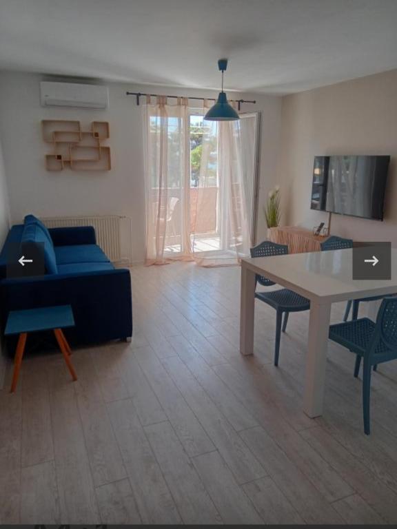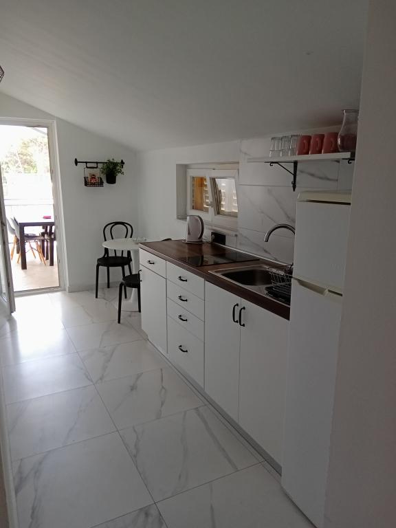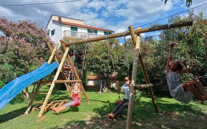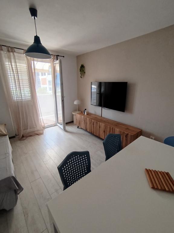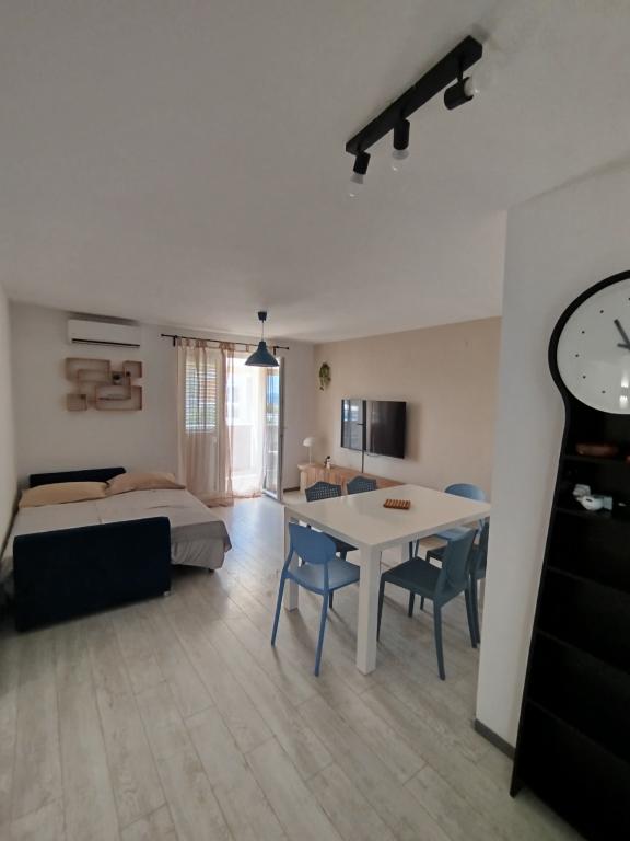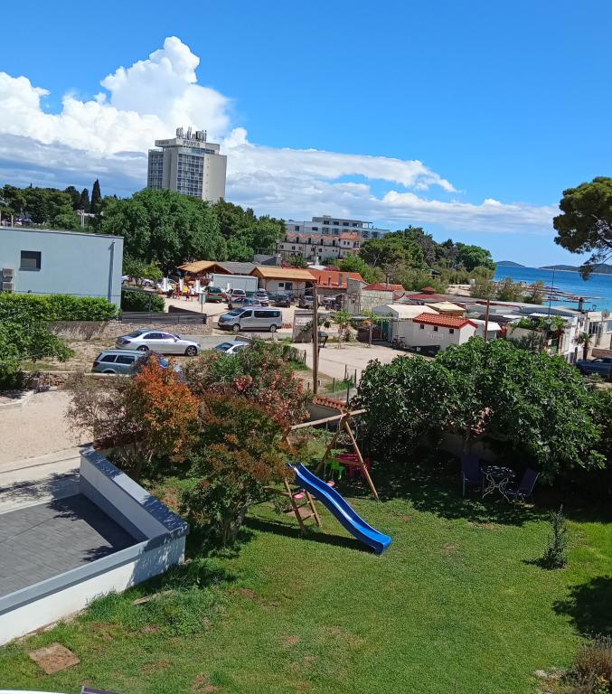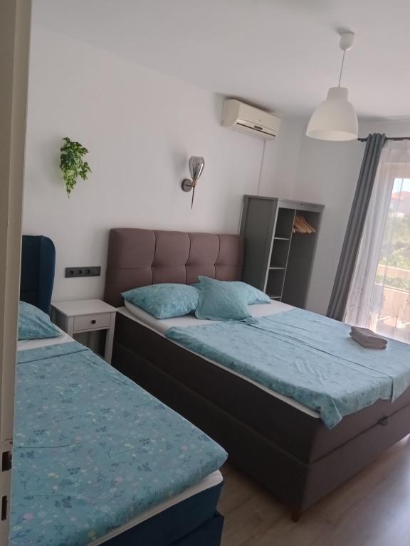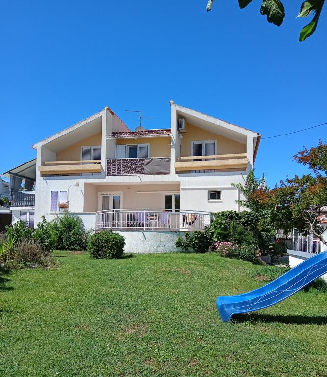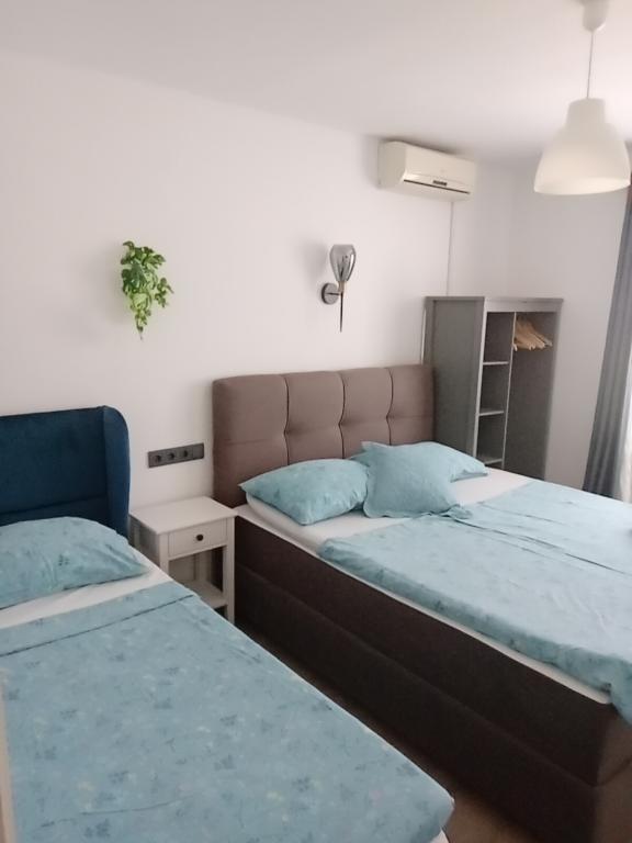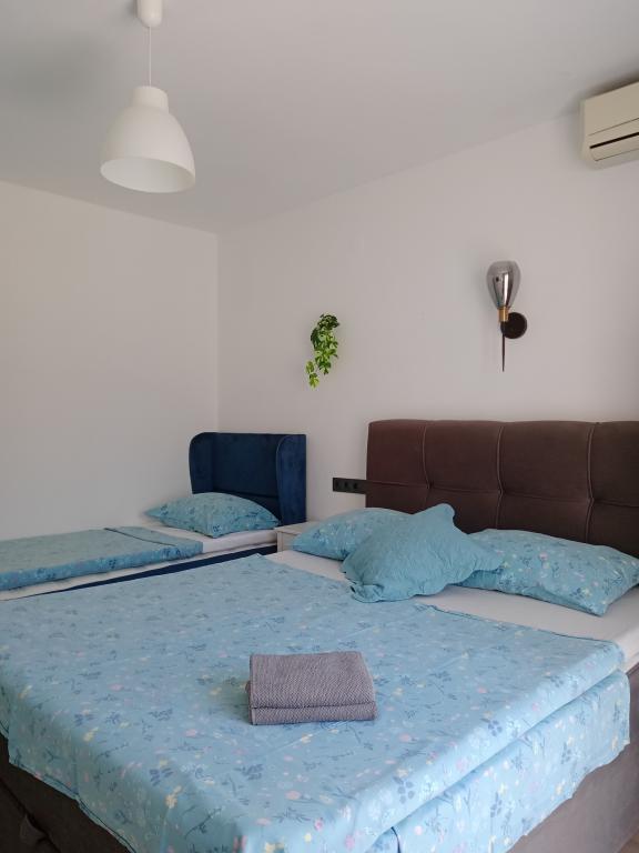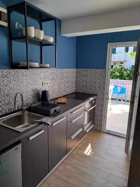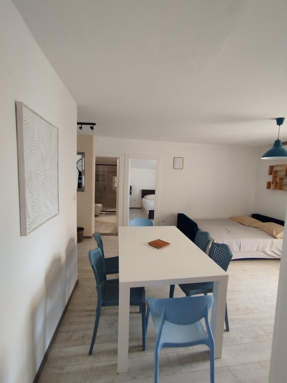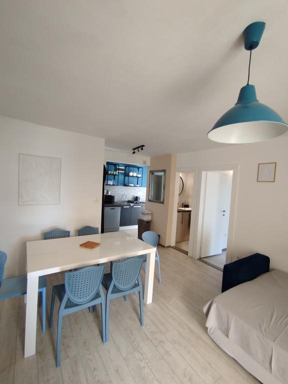 Apartments Blue Beach, gelegen in een rustig deel van de stad, op het strand, zee. Het centrum en andere voorzieningen is slechts 5 minuten lopen. Alle appartementen hebben een uitzicht op de zee, dennenbossen en een prachtige tuin. De appartementen zijn mooi ingericht met alle nodige faciliteiten. De mogelijkheid van het gebruik, de tuin, barbecue en een kinderspeelplaats. parkeren in de tuin.
