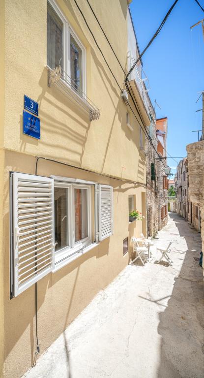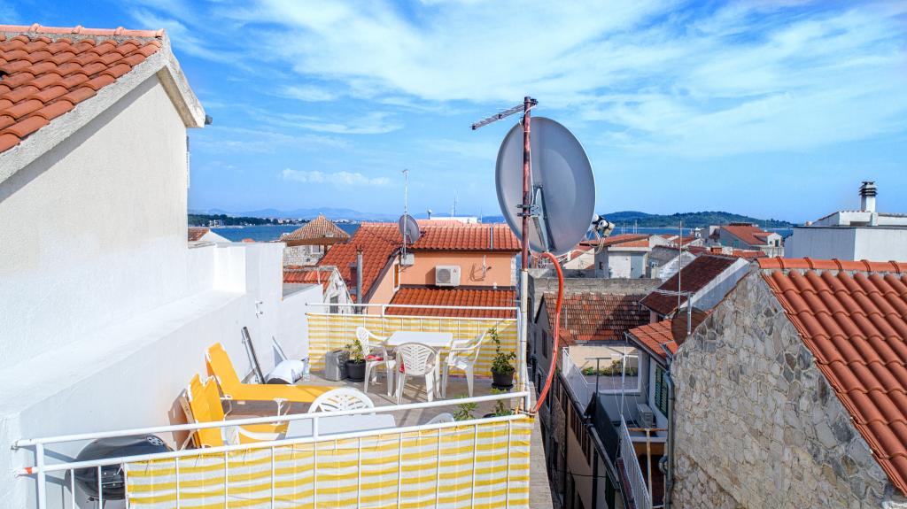 Onze appartementen zijn gelegen in een rustige straat in het centrum van de stad. Het huis is volledig gerenoveerd en modern uitgerust 2.015 jaar. Er zijn drie ruime studio appartementen op de begane grond, eerste en tweede verdieping. Op de top van het huis is een terras met uitzicht over de hele Vodice, zee en de eilanden. Het strand ligt op slechts 5 minuten lopen van het huis, en op slechts een steenworp afstand van het huis vindt u hier omringd door restaurants, bars en clubs. Umajmiti kan een bepaald appartement of het hele huis. We zullen u graag om u kennismaken met alle faciliteiten die u aanbiedt in Vodice.