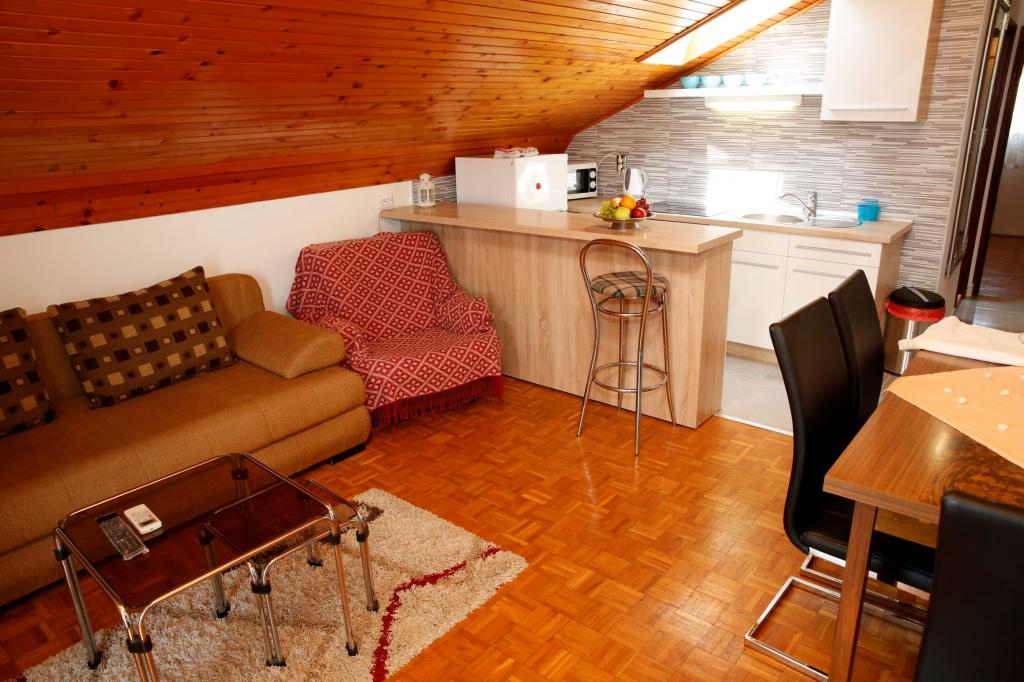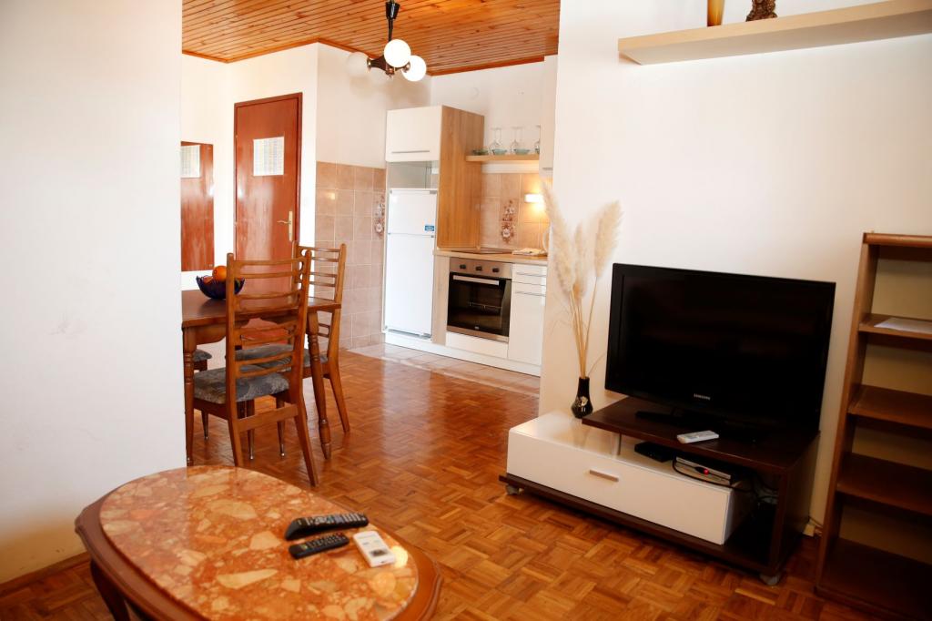 De appartementen Tarle hebben een uitstekende ligging, aangezien alle voorzieningen op slechts twee minuten loopafstand te bereiken zijn. Het dichtstbijzijnde strand is "Hangar", op 100 meter van de accommodatie. De appartementen zijn volledig uitgerust en beschikken over gratis parkeergelegenheid (gasten die een kamer huren hebben helaas geen eigen parkeerplaats, alleen in overleg met de eigenaar), wifi en airconditioning. Alle belastingen zijn bij de prijs inbegrepen.