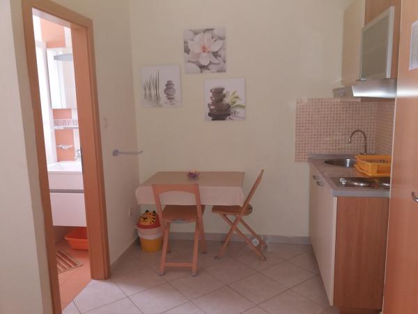Aangename vakantie in de appartementen (studio B) Wien. Zoals voor Studio B, en de uitrusting kan worden gelokaliseerd zeer goede apparatuur - airconditioning, een lcd-tv, een keuken die ook wordt beschouwd als een terras / balkon, toilet en douche. Naar het strand en de winkels kunnen worden gedaan op de voet (ongeveer 10 minuten) of met de auto (voor gezinnen met kinderen). Guidance Center van het appartement is 10-15 minuten. Toegankelijkheid gastheer wat ongetwijfeld meteen winnen, mevrouw Hoop en Daniela zijn er altijd voor je. We kunnen concluderen: als u weer besteden onze vakantie in Vodice, zal het in appartementen Wien.
