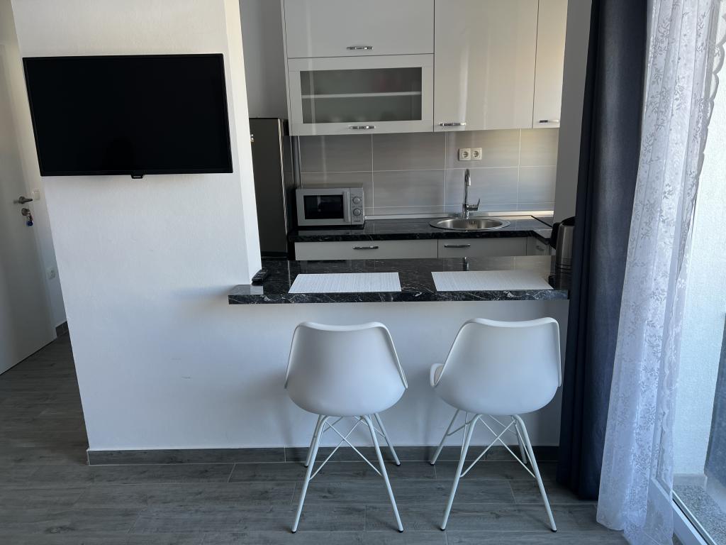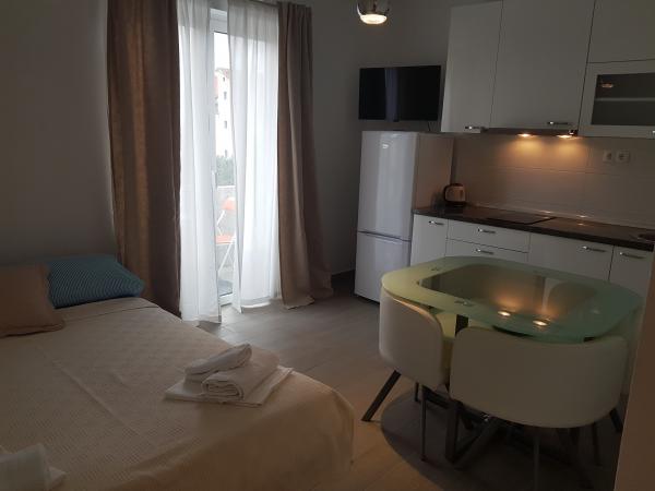 Het appartement is perfect voor een gezin van 2+1. Er is een groot bed in de slaapkamer en een bank in de kitchenette. Alles is zoals beschreven. De keuken en badkamer zijn uitgerust zoals thuis. De huisbaas is erg vriendelijk. Zij en haar dochter zorgen ervoor dat de appartementen schoon zijn en perfect voorbereid op nieuwe huurders. Ons appartement had een klein balkon met stoelen. Perfect voor ontbijt en koffie. De buurt is rustig en het ligt dicht bij het strand en een bakker met heerlijke broodjes en pizza per punt. Ik kan het van harte aanbevelen, vooral omdat dit mijn tweede verblijf hier is.