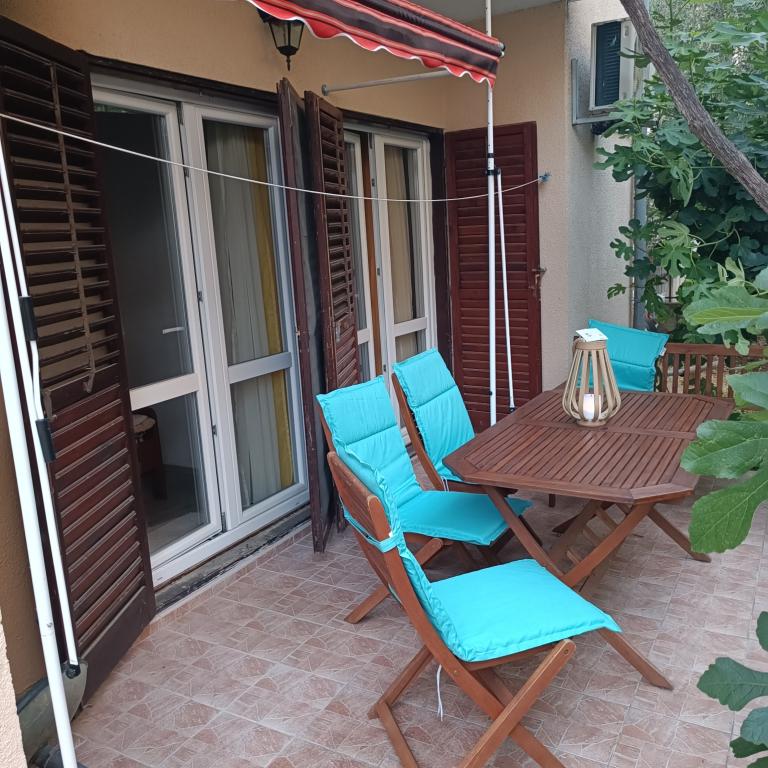 De appartementen liggen in een rustig deel van de stad. Elk appartement beschikt over een groot terras op de begane grond en biedt voldoende bescherming tegen de zon dankzij de beplanting en het beschermende zonnescherm waarmee u zelf de schaduw en/of de zondosis kunt bepalen. Rolstoeltoegankelijk is mogelijk, elk appartement heeft een terras van 65 (m2) + 15 (m2), onbeperkt internet, satelliet-tv, airconditioning, buitengrill en centrale verwarming in de winter. naar/ Tomija/ minimarkt.