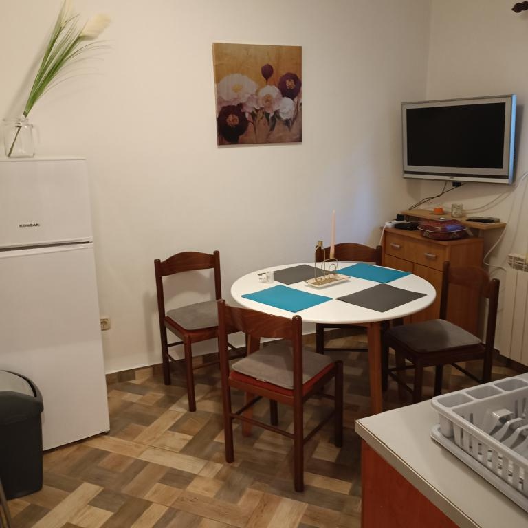 Hallo, ik groet meneer Zdravko, een erg aardige gastheer. Rustige en vredige plek, parkeren op het terrein. Twee fietsen beschikbaar naast het stapelbed buiten. Ik raad aan!