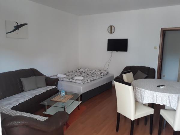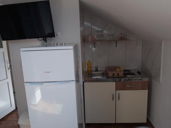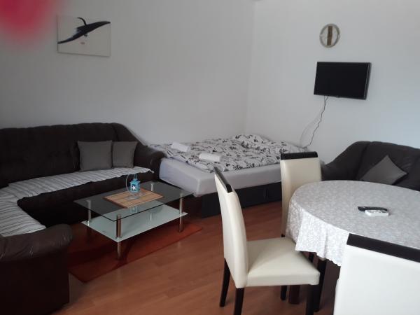 We hebben nieuw gebouwde appartementen op een aantrekkelijke locatie in Vodice, in het complex zijn er 3 studio-appartementen, elk modern uitgerust met een keuken, badkamer, tweepersoonsbed, tv... er is wifi en airconditioning in de appartementen. .. de keukens zijn uitgerust met alles wat nodig is voor gebruik.... . handdoeken en beddengoed.... . elk appartement heeft een beveiligde parkeerplaats naast het gebouw....de appartementen hebben ook een parasol die meegenomen kan worden naar het strand.... De appartementen bevinden zich op de eerste verdieping waar zich een groot terras met parasols bevindt.... Op de begane grond is er een appartement voor 4 personen met een groot mooi terras, een slaapkamer, een woonkamer met twee extra bedden, een keuken uitgerust met alles wat je nodig hebt, een badkamer met een wasmachine... De appartementen liggen op 500 meter van het strand, een winkel op 400 meter....restaurants op 450 meter....