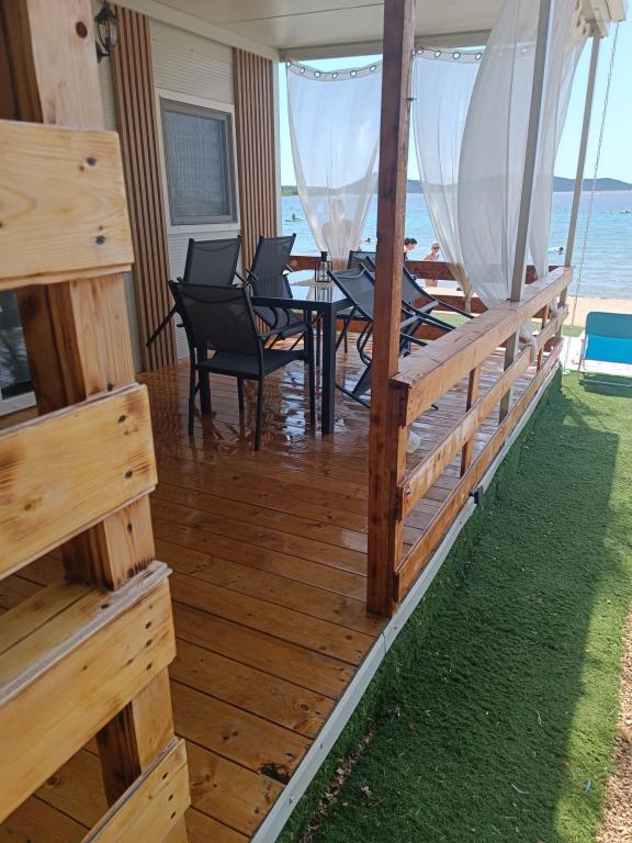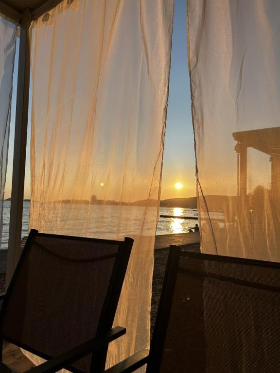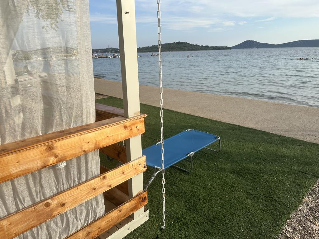 Villa Kiara ligt op de parkeerplaats van Imperijal Vodice, op de eerste rij aan zee (5 meter van het terras). Het huis heeft twee slaapkamers met grote bedden en een extra bed voor twee personen. Een coupon, keuken, grill, koelkast, airconditioning, tv, internet, soepplank en alles wat u nodig heeft voor een aangenaam verblijf is aanwezig.