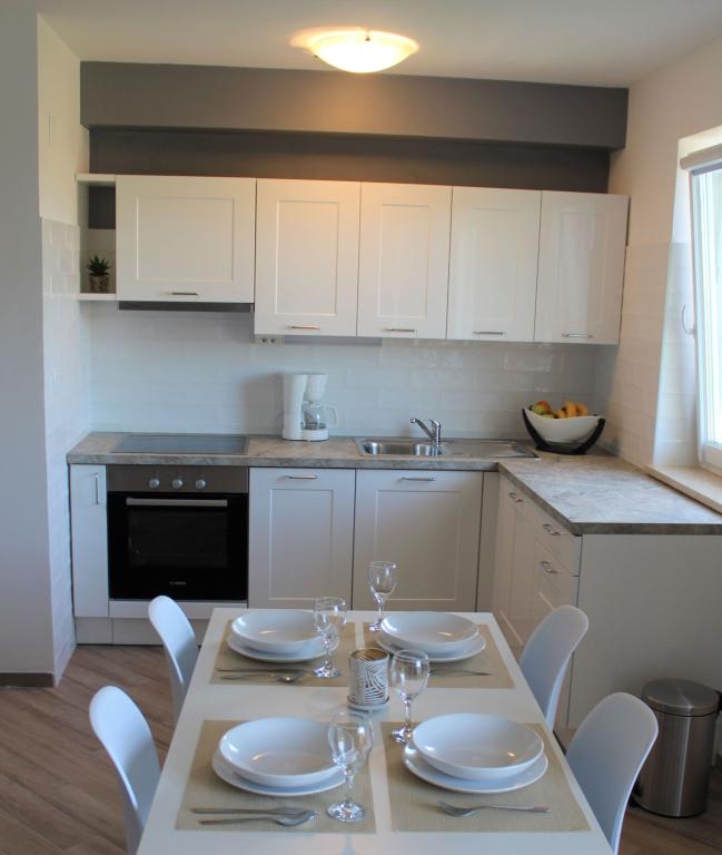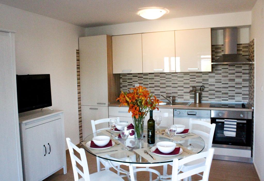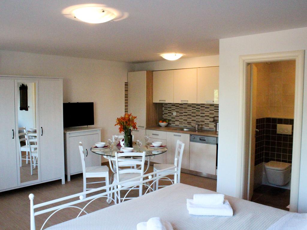 Comfortabele en moderne appartementen zijn gelegen op een heuvel, in een rustige omgeving met een prachtig uitzicht op de zee en de stad. De faciliteit ligt op 800 m van het centrum. Het dichtstbijzijnde strand en de haven liggen op 5 minuten lopen. Het kiezelstrand ligt op 15 minuten afstand.