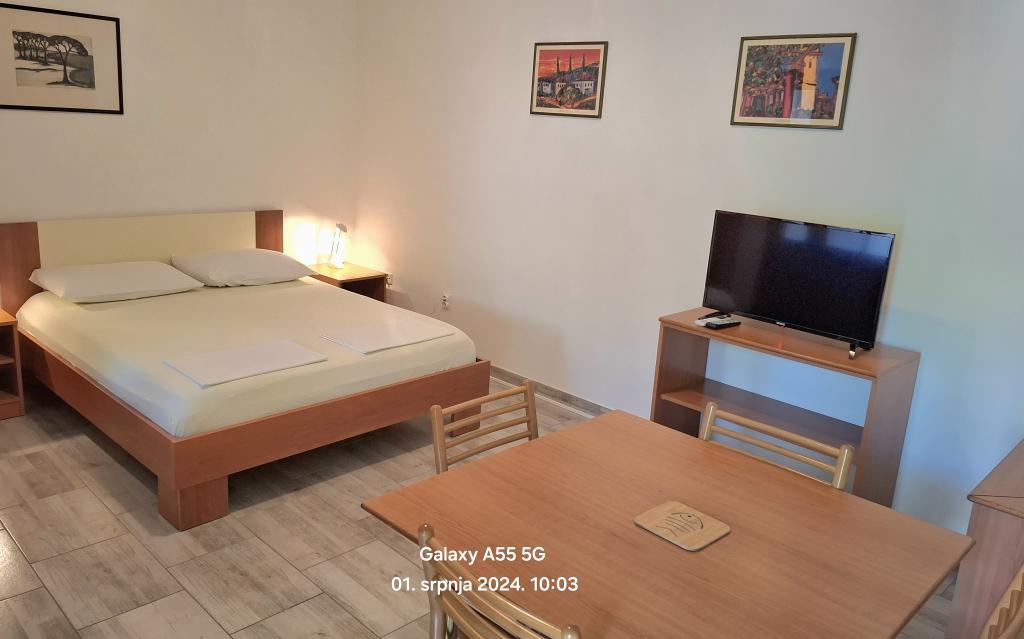 Zeer vriendelijke gastheren, prettige sfeer, comfortabele appartementen. Zeer schoon. Er zijn voldoende parkeerplaatsen in de natuurlijke schaduw. De prijs-kwaliteitverhouding is uitzonderlijk.