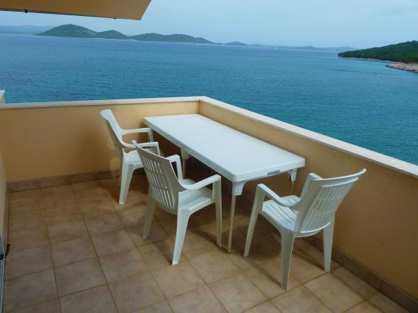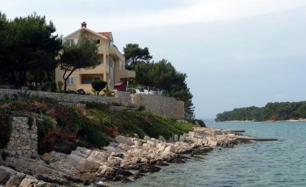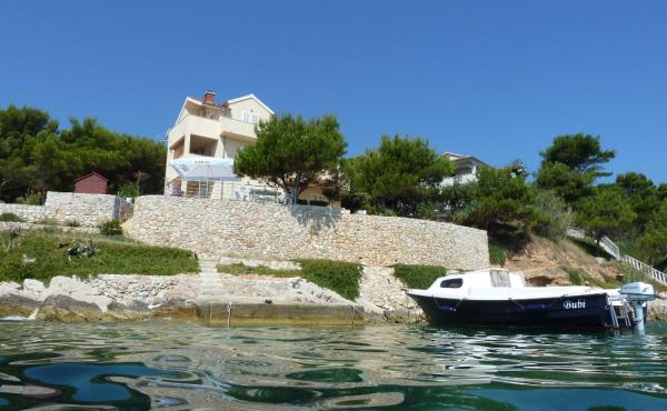 Vrgada, volledig uitgeruste, comfortabele appartementen, gelegen aan de kust, in de kust. Ideaal gelegen op een soort van 300 meter van het centrum van de stad, biedt rust en isolatie, en toch voldoende nabijheid van alle restaurants op het eiland. Elk appartement heeft twee balkons met uitzicht op de zee, in de voorkant van het huis is een terras met ligstoelen van waaruit u kunt genieten van het prachtige uitzicht. Achter het huis is een tuin met olijfbomen en traditionele mediterrane vegetatie, terwijl de voortuin met pijnbomen. Het rotsachtige strand is in de voorkant van het huis, terwijl het zandstrand ligt op slechts 200 meter of drie minuten lopen.