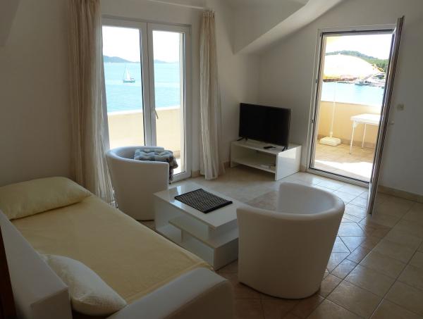 Zeer mooie en ruime accommodatie direct aan de kust. De geest van de uitgebrande zon. Inrichting van het appartement evenals de netheid van 5 punten van 5. Eigenaren erg mil en priatelski. Het eiland is een zandstrand (ongeveer 5 minuten lopen van het appartement), een supermarkt en diverse restaurants. Er zijn geen auto's. Eigenlijk moet de auto in de overloop worden achtergelaten en worden vervoerd door de boot, die regelmatig gedurende de dag vervaagt. . We raden zowel romantische vakanties als gezinnen met kinderen aan.
