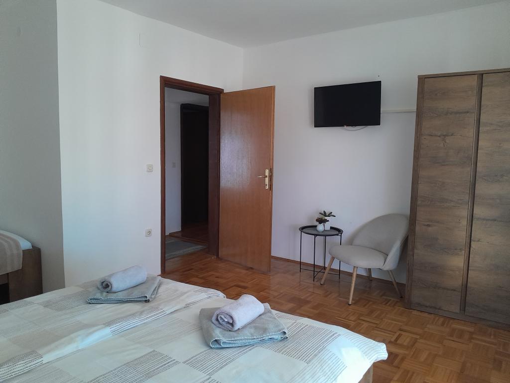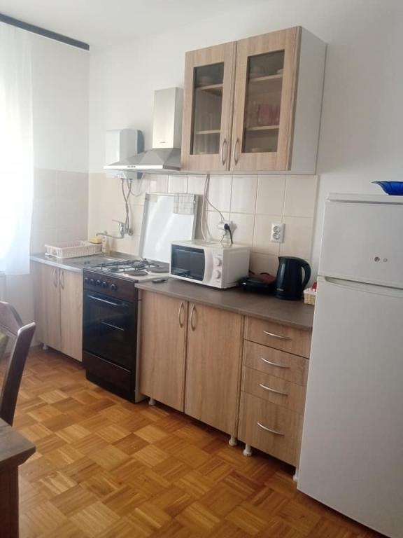 Het appartement "Kod dide i baka" is gelegen in een rustig deel van Mitnica, op de eerste verdieping van een gezinswoning. Het bestaat uit drie kamers, een keuken en een badkamer. De driepersoonskamer (tweepersoonsbed en eenpersoonsbed) heeft een balkon met uitzicht op het grasveld en de straat. Een tweepersoonskamer heeft twee aparte bedden. De kamer met drie aparte bedden (twee kunnen worden samengevoegd tot een tweepersoonsbed) heeft een groot terras voor koffie in de ochtend naast het bladerdak van de kersenboom. Kom je met kinderen, dan hebben we ook een babybedje voor onze kleinste gasten. Uw auto kunt u parkeren in de garage op het erf. Wij bieden onze gasten een barbecue aan in het prieel met een grote eettafel. Achter de grill is een kleine tuin waar u uw eigen seizoenssalade kunt plukken die op traditionele wijze is geteeld. Wij staan tot uw beschikking voor al uw vragen. Wij verheugen ons op uw komst en heten u van harte welkom! grootvader Ivica en grootmoeder Mirjana