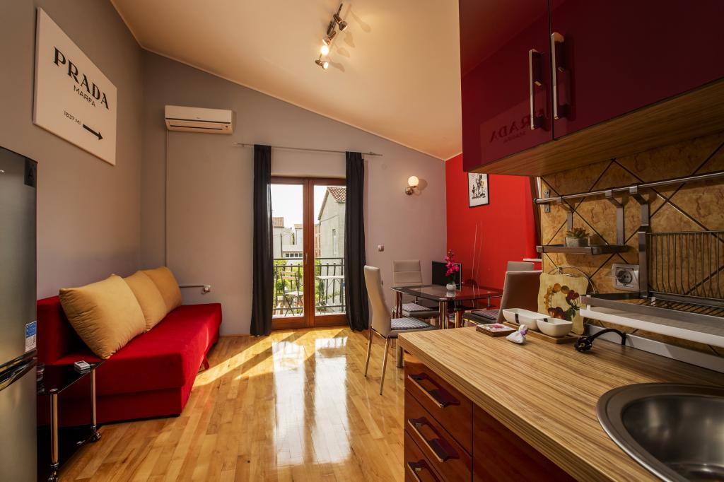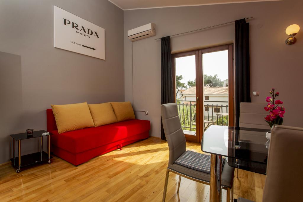 Volledig en modern ingerichte appartementen op 80 m van de zee. Appartement A1 (78 m2) heeft twee slaapkamers, een keuken, een badkamer en een grote woonkamer met een eethoek en een extra bed. Geschikt voor maximaal 6 personen, voorzien van airconditioning, en gasten hebben toegang tot satelliet-tv, WiFi-internet, koffiezetapparaat, magnetron, broodrooster en een kluisje. Appartement A2 (41 m2) heeft één slaapkamer en een ruimte met een keuken, eettafel en extra bed. Geschikt voor maximaal 4 personen, voorzien van airconditioning, twee balkons en gasten hebben toegang tot satelliet-tv, WiFi-internet, koffiezetapparaat, magnetron, broodrooster en een kluisje. Studio A3 is geschikt voor maximaal 2 personen en beschikt over een balkon, airconditioning en gasten hebben de beschikking over satelliet-tv, WiFi-internet, een koffiezetapparaat, een magnetron, een broodrooster en een kluisje. Het is ook mogelijk om het hele huis te huren, zodat er maximaal 12 personen kunnen verblijven.