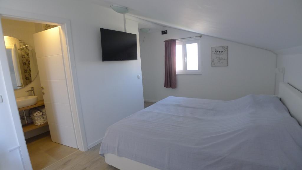 Volledig uitgerust, modern appartement Nikita is gelegen in Zablaće, in een rustig deel van de stad, 40 m van het strand, 5 km van het centrum van Šibenik, 2 km van het hotelcomplex "Solaris". Nieuwbouw, 2e verdieping. Binnen 300 meter van het appartement zijn er winkels, bakkerijen, cafés, restaurants, pizzeria, kinderspeelplaats...