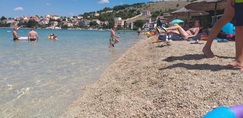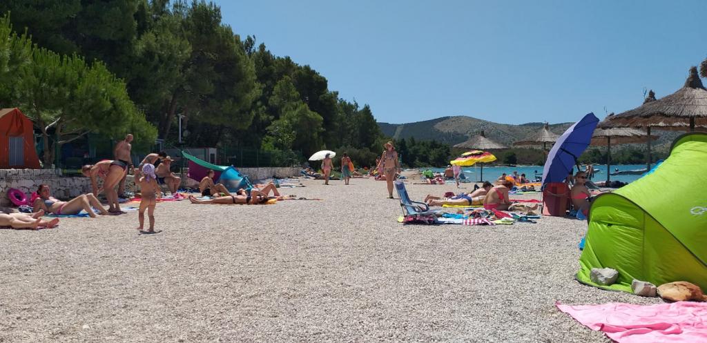 Volledig en modern ingericht appartement in een rustige buurt van Žaborić. Er is een tweede rij naar de zee met uitzicht op de zee en de zonsondergang. De faciliteit ligt op 70 meter van de zee en het strand, evenals restaurants met een brede selectie, een promenade aan zee. Drie koffiebars direct aan zee. Het strand is ideaal voor kinderen, zonder verkeer in de buurt van het strand. Er is parkeergelegenheid, belastingen zijn bij de prijs inbegrepen, airconditioning en wifi.