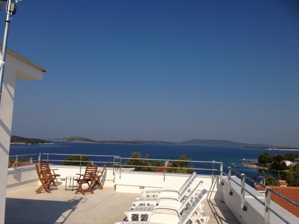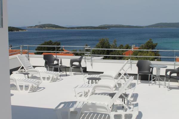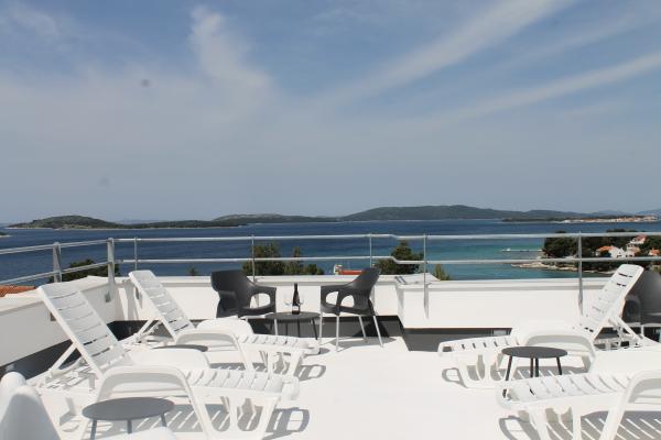 Ze villa is gelegen in een rustig deel van Zaboric, 160 m van de zee. Er zijn 8 suites, ontvangen max. 29 personen. Hij wijst op de moderne architectuur en een terras op het platte dak van het huis met een spectaculair uitzicht op de zee en de eilanden. Het terras is voorzien van een douche, meubels om te zonnen en gezelligheid. De appartementen zijn ingericht met moderne en functionele meubels. Appartement A2 3 A2 2 en een vaatwasser. Gratis Wi-Fi is beschikbaar in alle appartementen. Parkeren is gratis op het terrein.