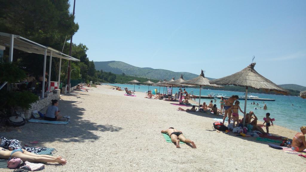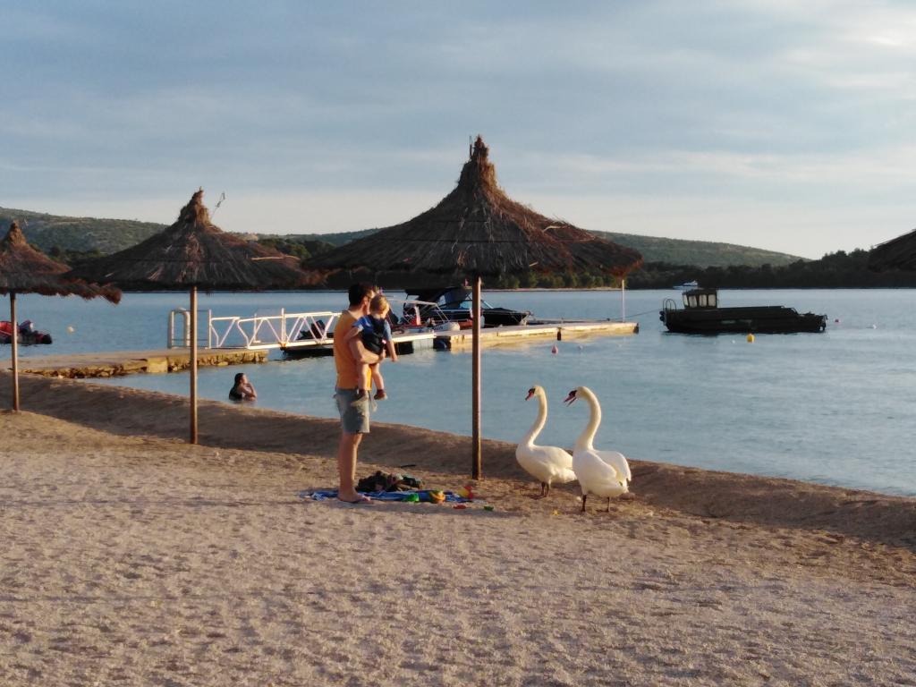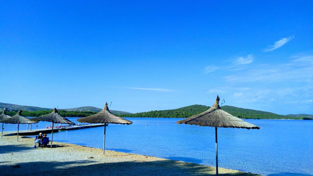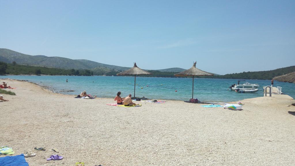 Zeer rustig, rustig, mooi strand in de baai, bereikbaar met een elektrische kar. Locatie vlak bij het strand, zeer groot appartement op de begane grond - reis met een zeer zware elektrische rolstoel door het terras - slechts één stap en drempel - we hadden onze eigen opritten - dus voor ons was het OK; vanwege onze zeer ongebruikelijke behoeften - een gehandicapte bij ons gebruikte een enorme douche op een aangrenzende camping op de weg van het strand. Appartement in de stijl van de jaren 90 - misschien niet de laatste mode, maar goed onderhouden en zeer schoon, airconditioning en volledige uitrusting. En het allerbelangrijkste - JOŠKO - een gouden man - ongelooflijk vriendelijk en behulpzaam, met wie je gezellig kunt kletsen, kunt drinken wat iedereen leuk vindt om te biljarten en tafeltennissen. JOŠKO - BEDANKT !!! MET VRIENDELIJKE GROET !!! TOT ZIENS !!!