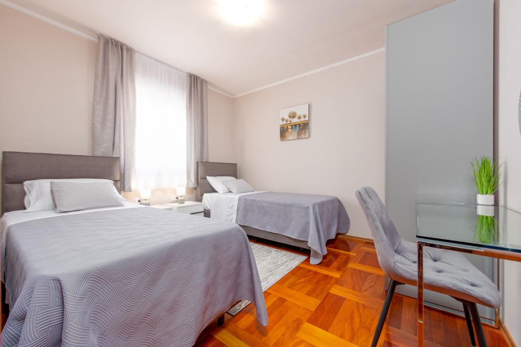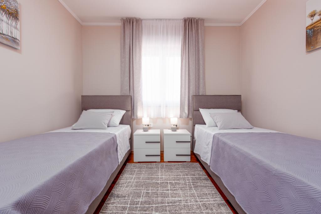 Appartement Matea bestaat uit twee slaapkamers, een volledig uitgeruste keuken, een woonkamer, een badkamer en een terras. Het is gelegen op een rustige en aantrekkelijke locatie, vlakbij de oude stad, het strand en het treinstation, tegenover de City Galleria, waar diverse winkels, een supermarkt, een apotheek, een sportschool, een bioscoop, cafés en meer te vinden zijn. Er is een parkeerplaats voor het gebouw, die gratis is voor gasten van het appartement. Roken is verboden in het appartement, behalve op het terras.